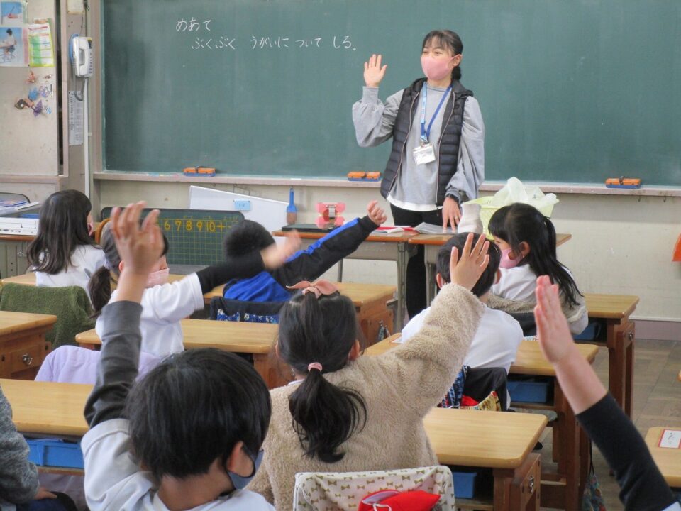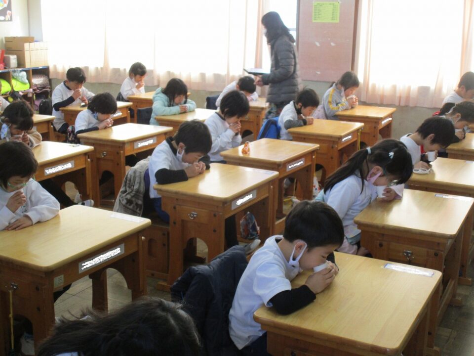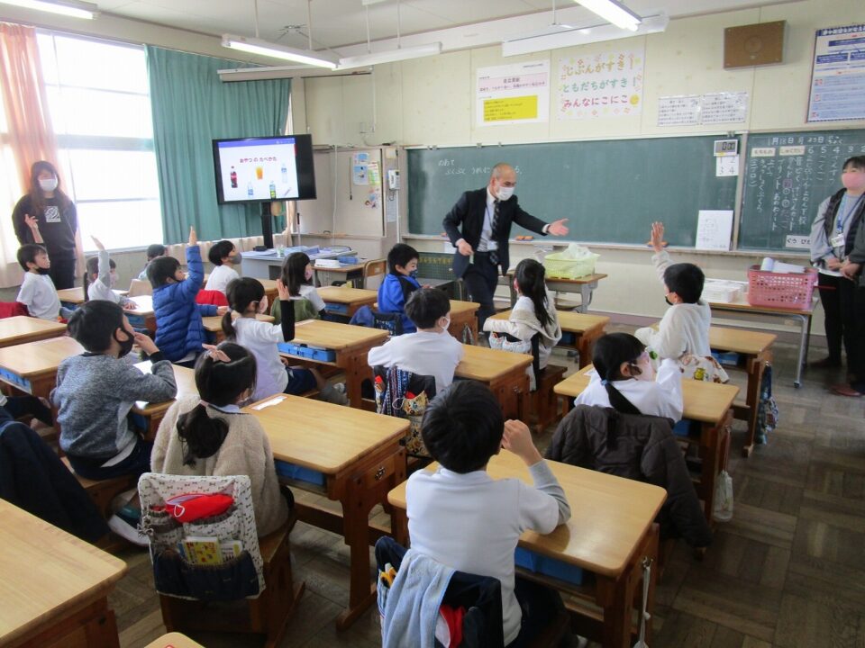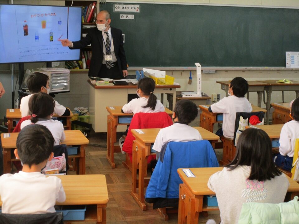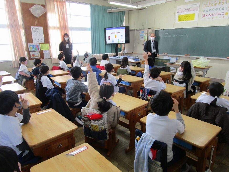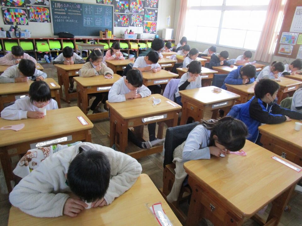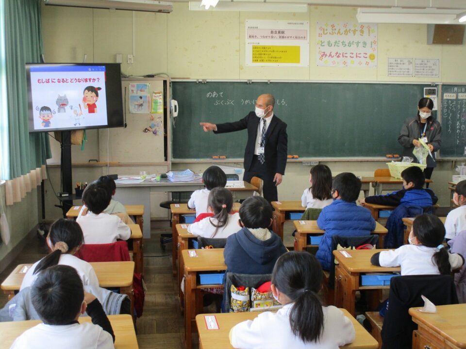 今日は、教育委員会と健康づくり課から教えに来てもらい、ぶくぶくうがいの仕方や歯みがきの大切さを学びました。