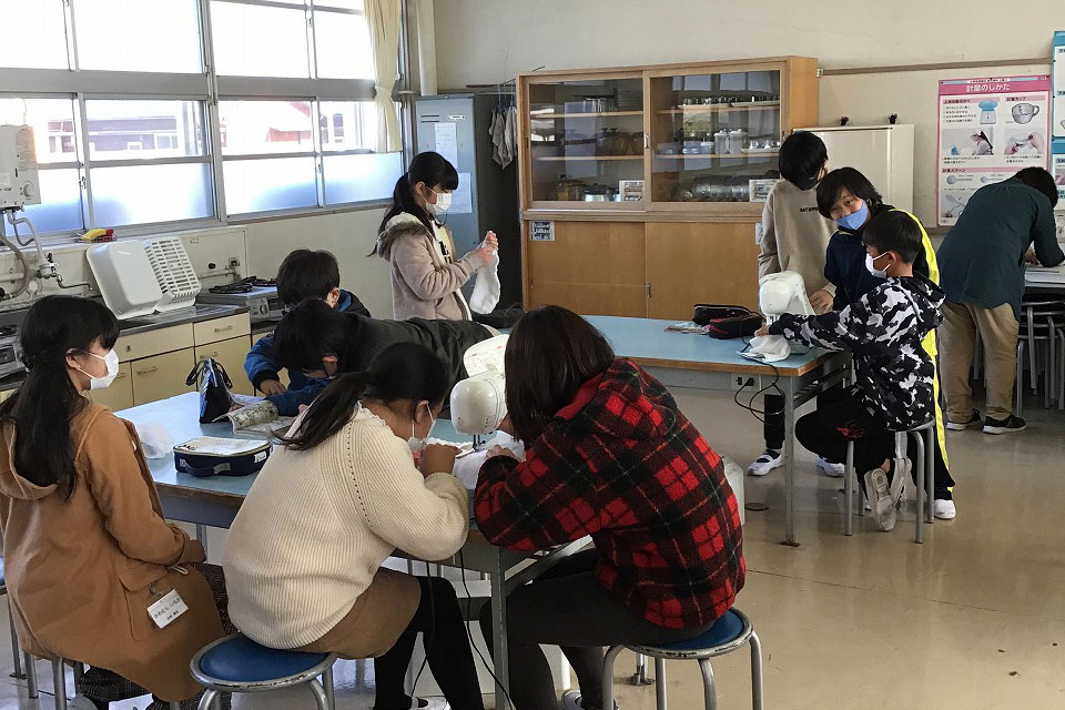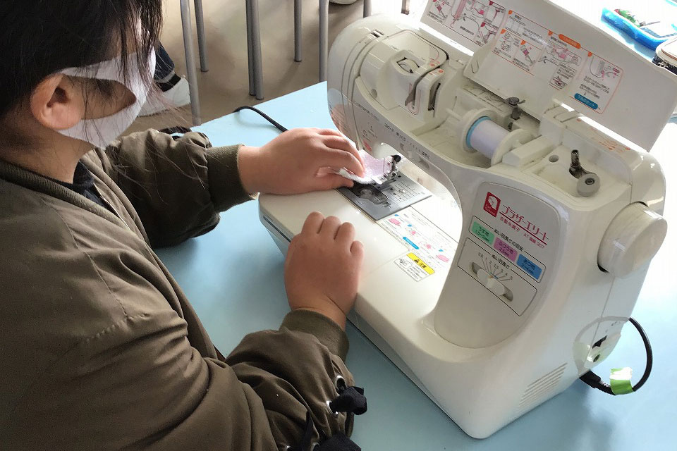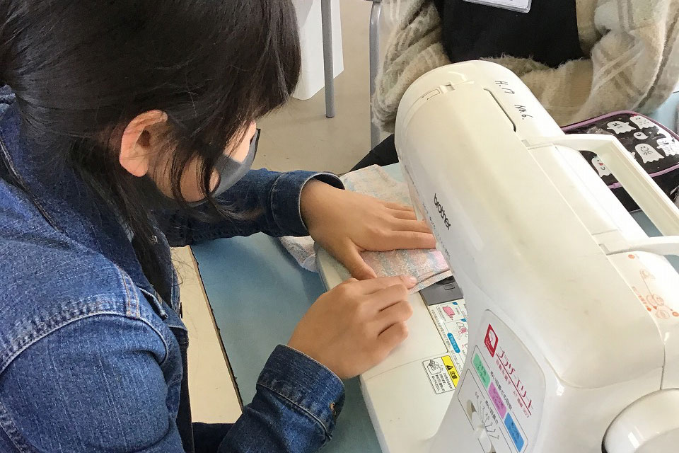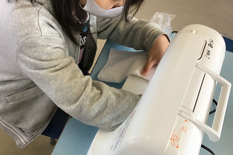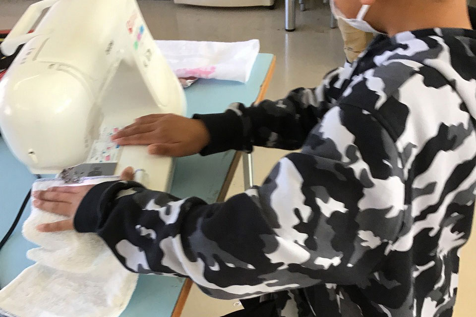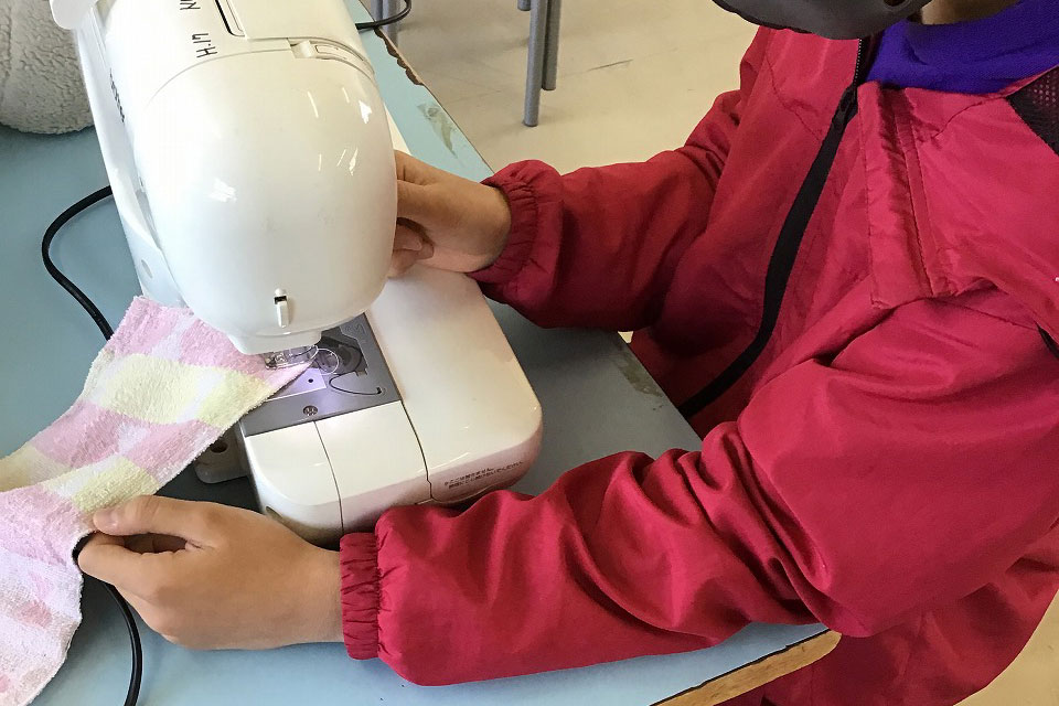 6年生家庭科ぞうきん作り