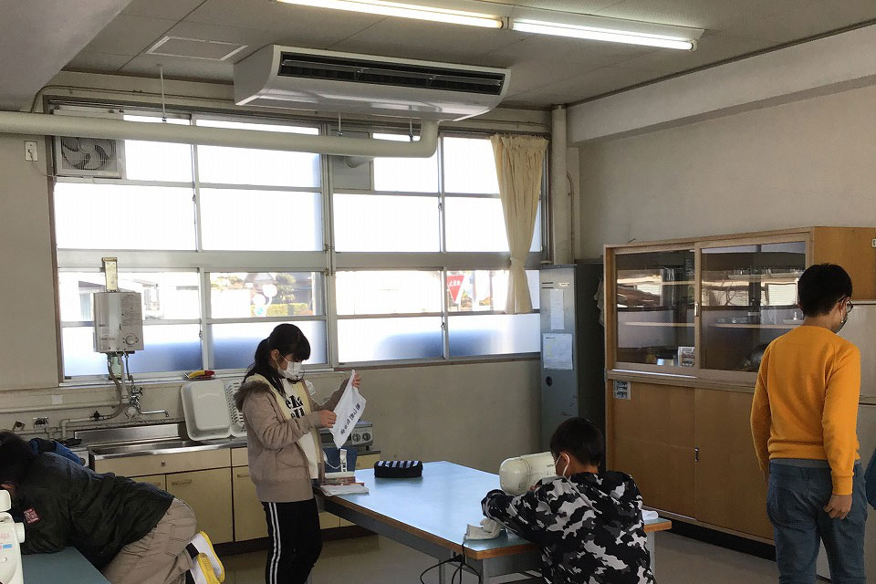 今月から、家庭科室にはエアコンが入っていますので、子どもたちは、ほんわか暖かい部屋で、ぶるぶるふるえることなく作業を進めることができています。今までは、大型ストーブでしたので、事前につけておくことができず、暖かくなるまで時間がかかっていましたが、エアコンは、前もってつけておくことができます。また、空気もきれいです。
