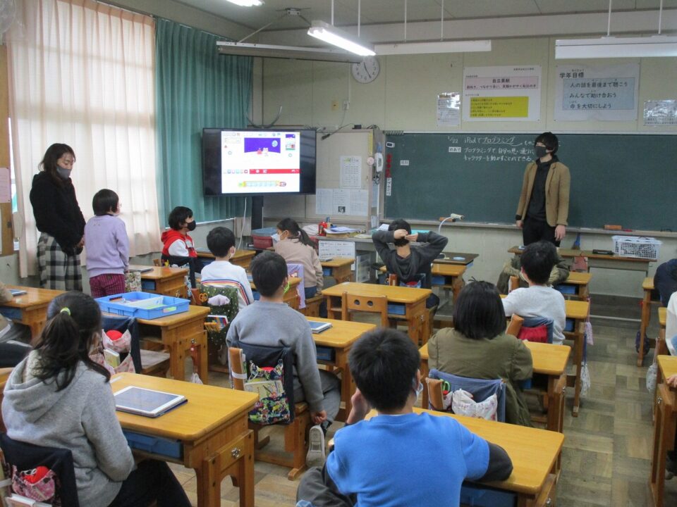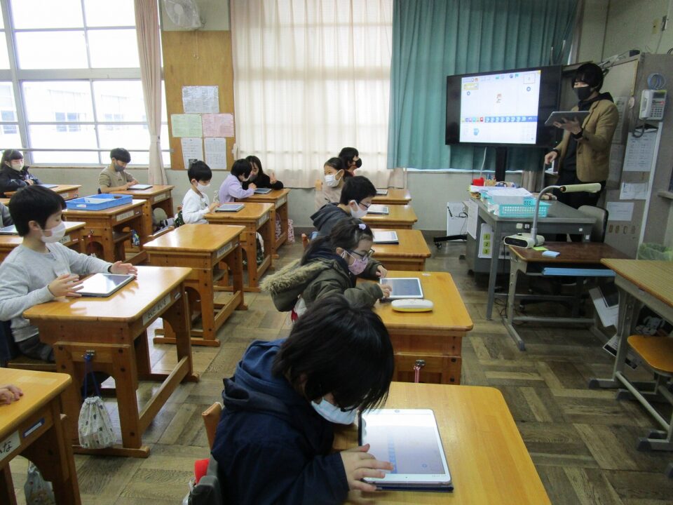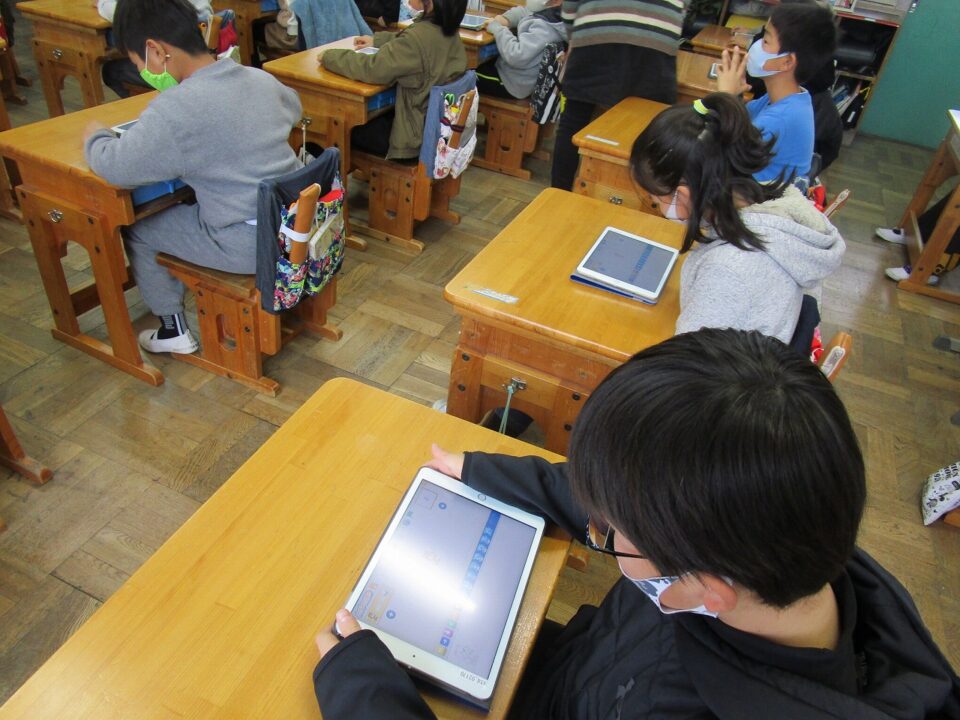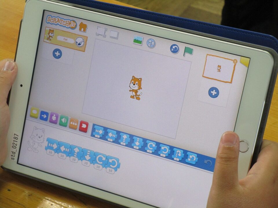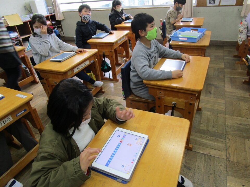 今日は、3年生がスクラッチJr.でプログラミングの学習をしました。