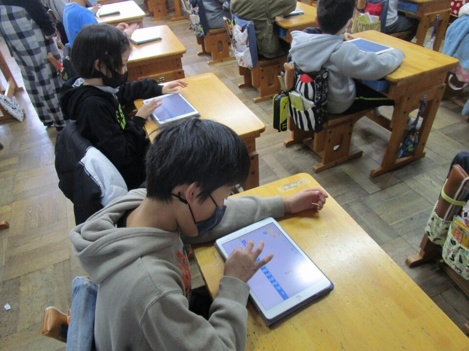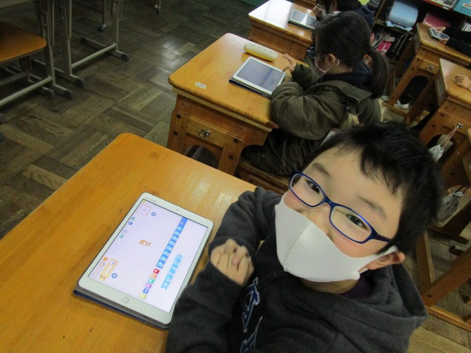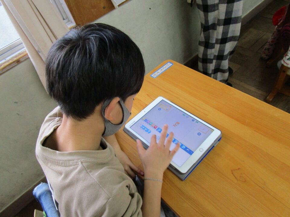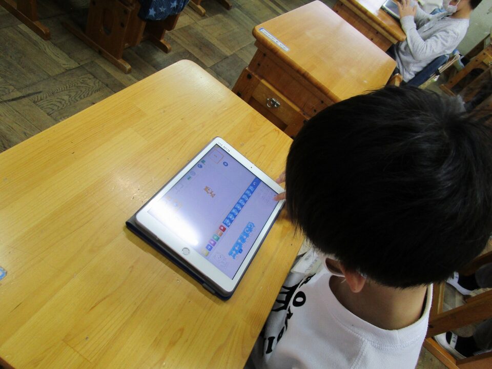 以前からもプログラミング学習は、先行しておりましたが、一人1台iPadになったことで自分の使っているiPadにどんどん保存もできる事から、本格的にプログラミング学習にも取り組めています。