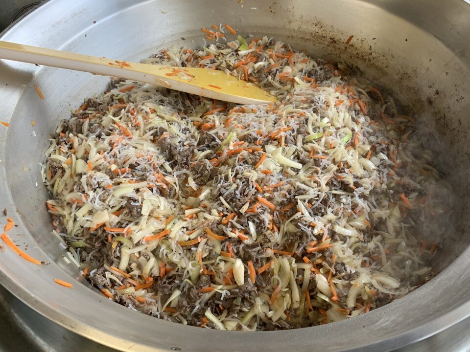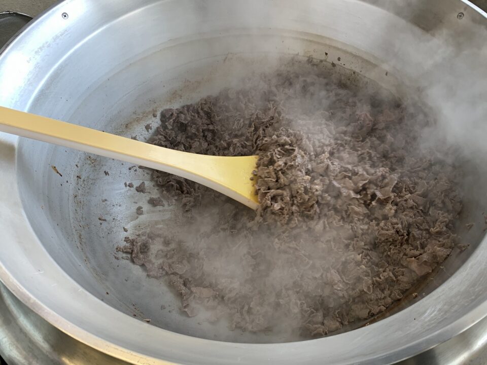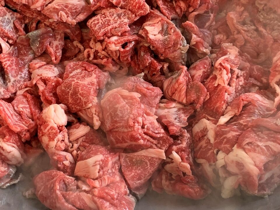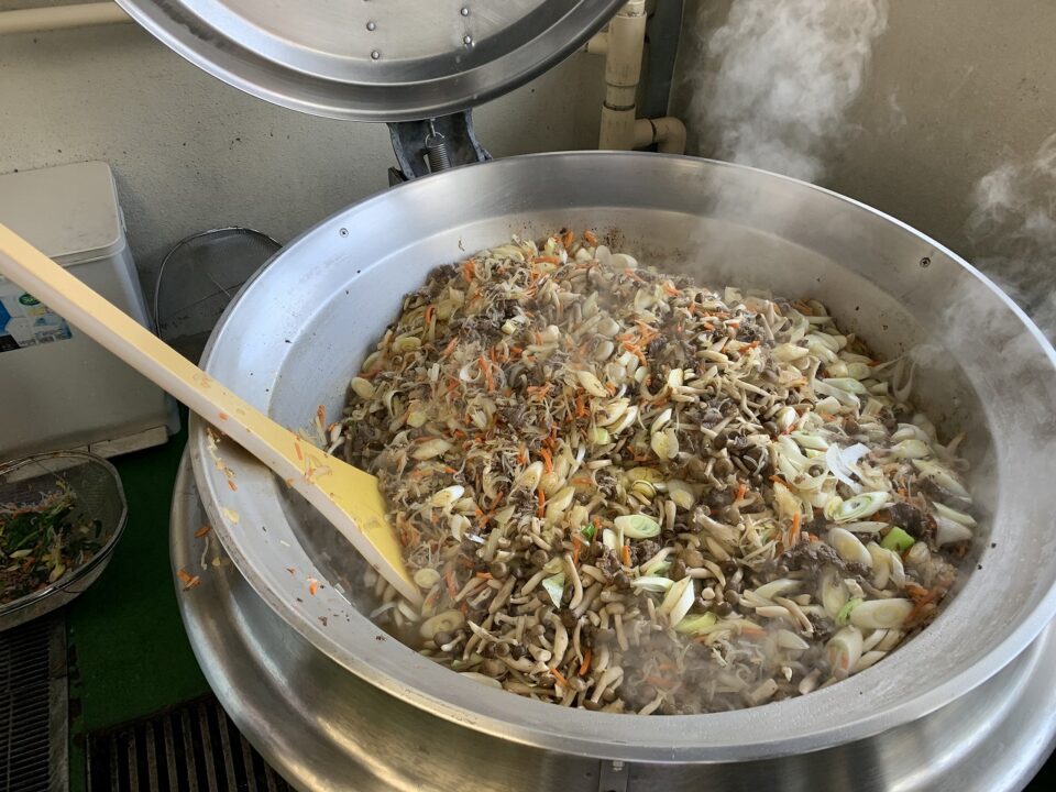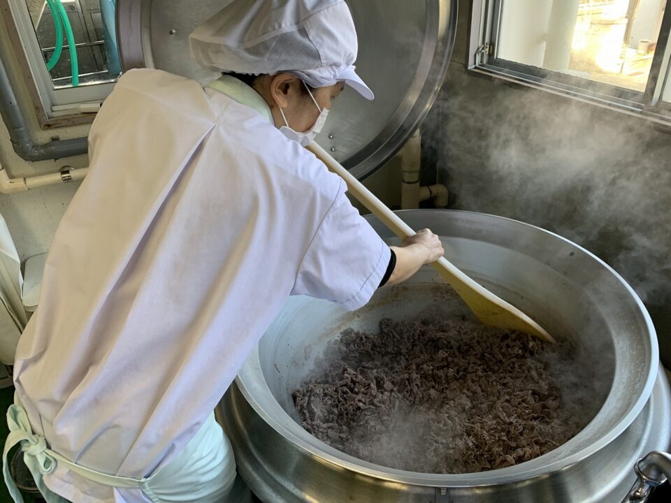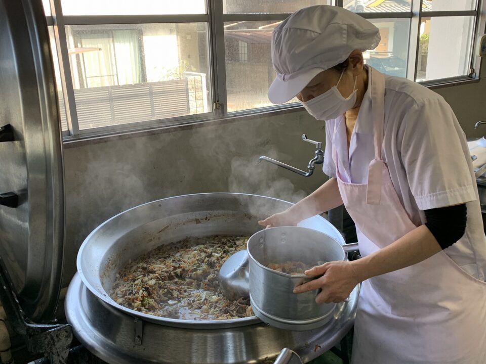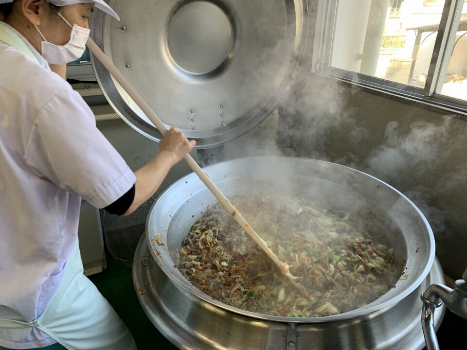 給食室で調理員さんたちが、『松阪牛のすき煮』を作っているところをのぞいてみました~~~(*^▽^*)
