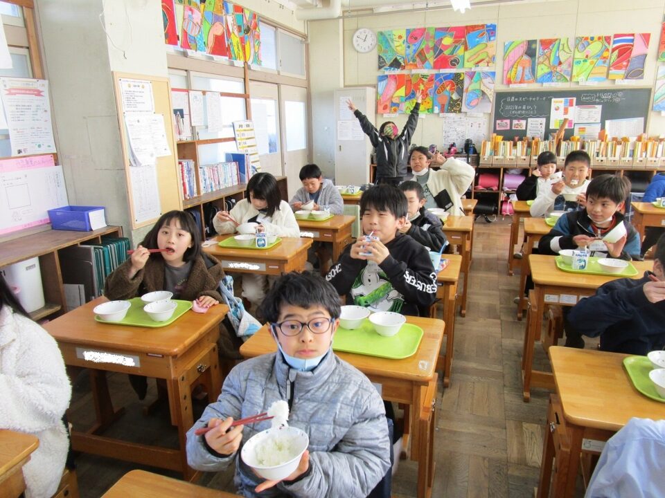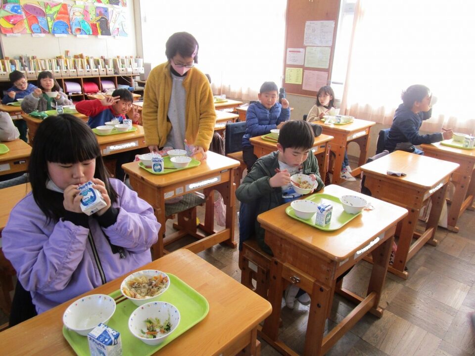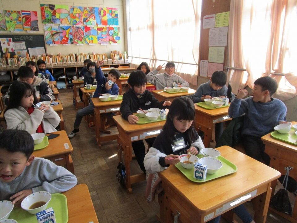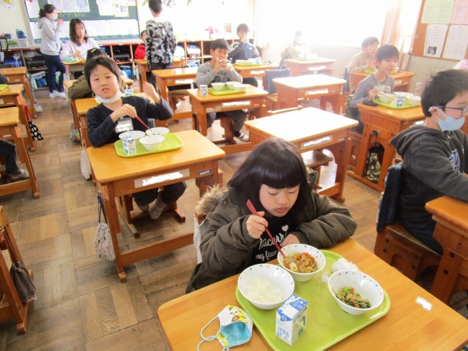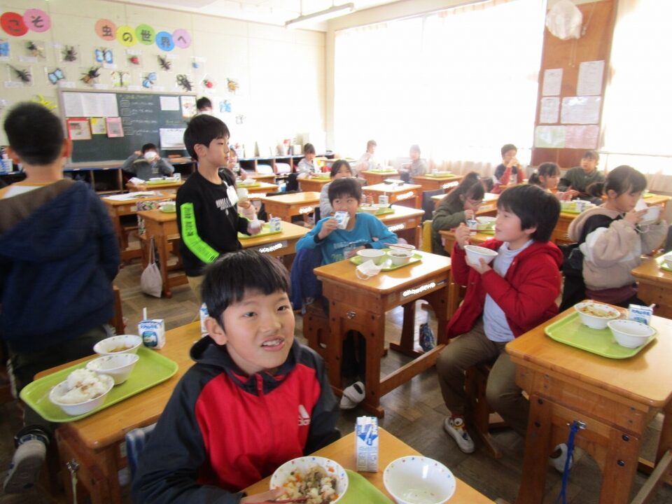 今日の献立は、ごはん、牛乳、松阪牛のすき煮、ほうれん草ののり酢和え でした。