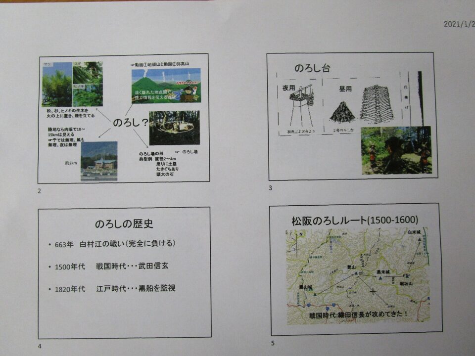 松阪市を中心とした山城愛好家の方たちでつくる「松阪山城会」の方たちが、2月4日(木)にのろしを上げることから、今日は、事前に会長 松本 薫さんと顧問 加藤 進さんにお越しいただき、「お城について」と「のろしについて」お話を聞かせていただきました。