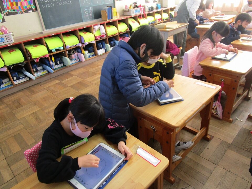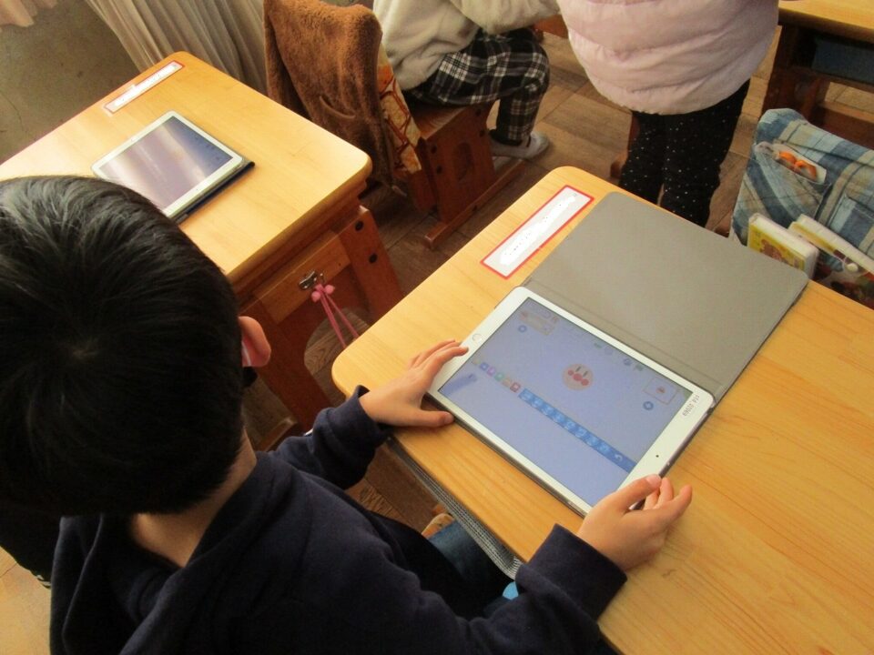 1年2組で、情報担当教諭によるプログラミング学習を行いました。