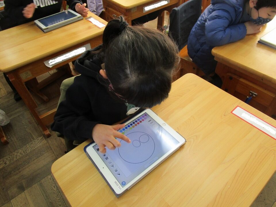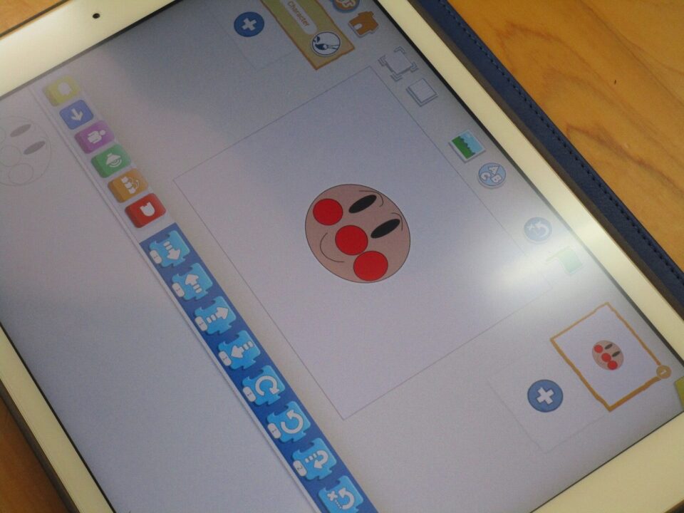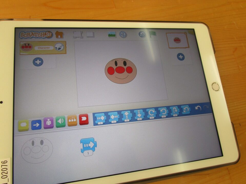 今日の学習は、「アンパンマンを自分で描いて、自分の描いたアンパンマンにプラグラムを組んで、自分の思い通りにアンパンマンを動かす」という学習です。