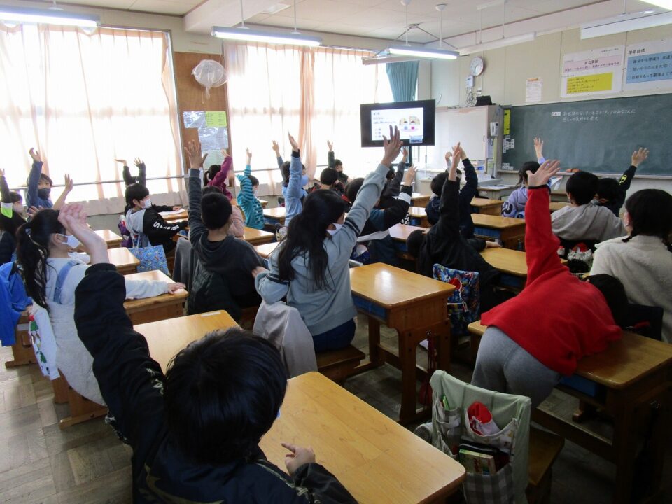 今日は、日頃お世話になっているボランティアさんにお越しいただき、学校に関してのクイズをして楽しみました。