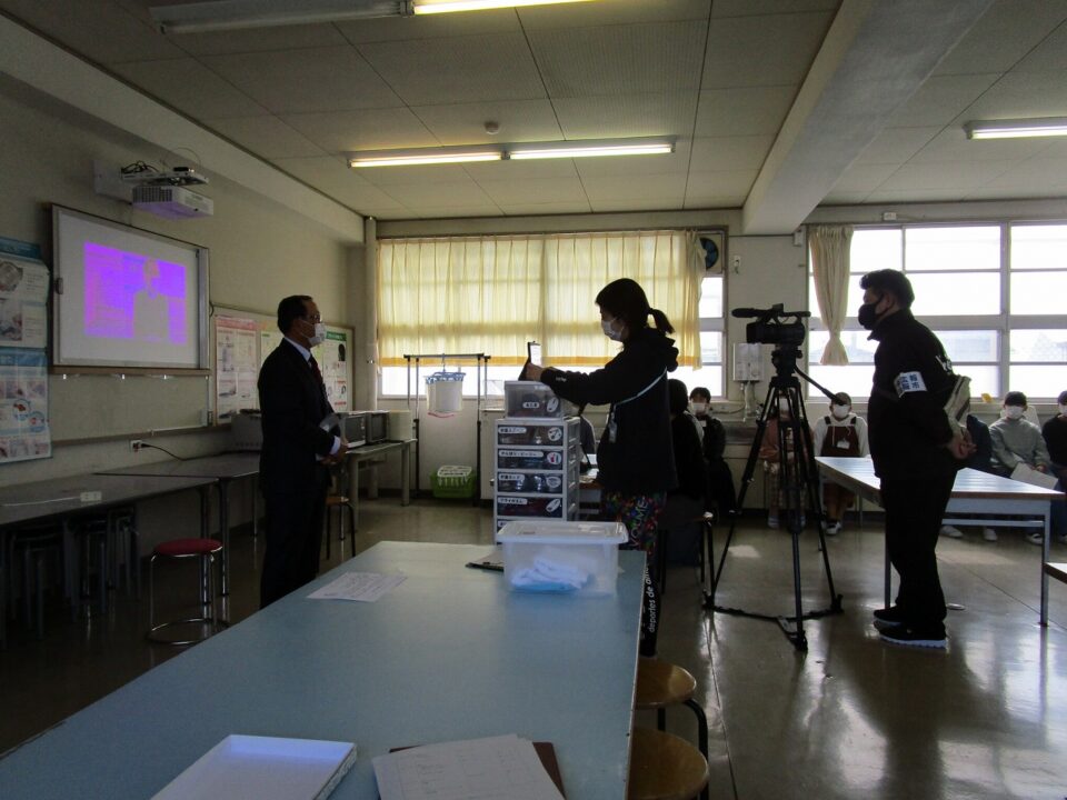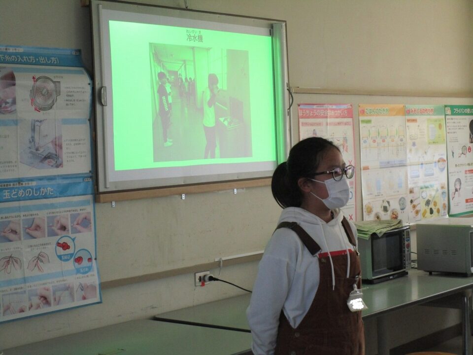 代表委員さんから130周年記念の品、家庭科室と理科室にエアコン設置と各階に冷水機1台ずつ、計3台です。