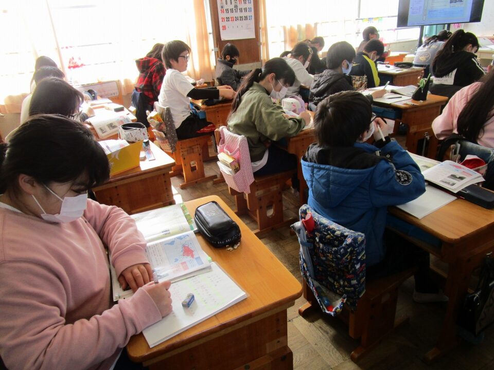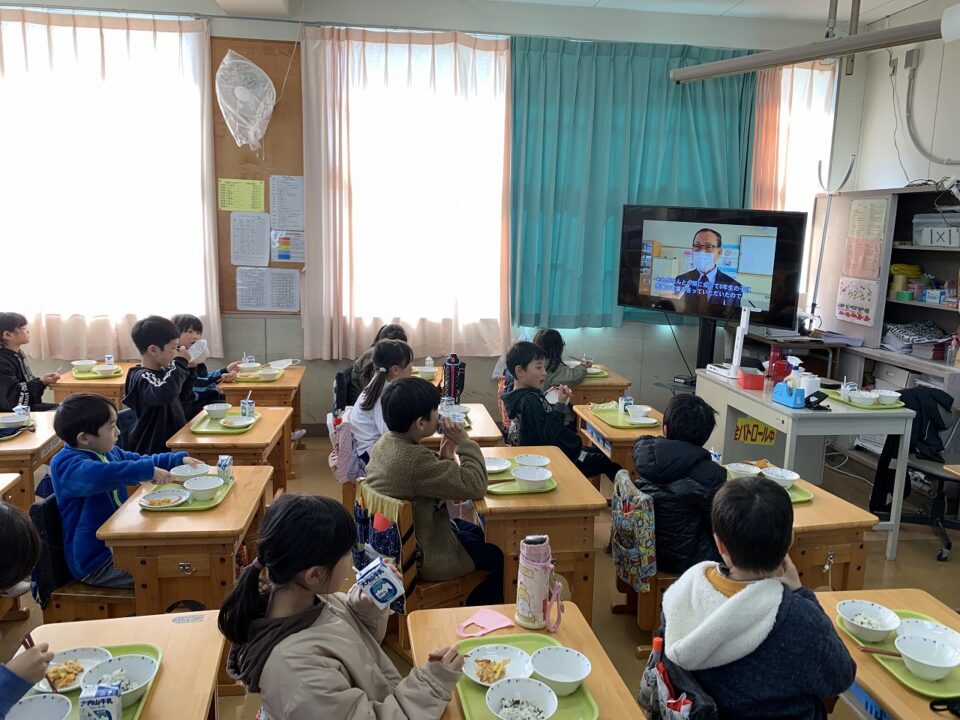 今日は、先日の2月17日(水)に行われた「学校支援ボランティアさんとの交流会・奥村さんとの贈呈式」の様子を各クラスで観ました。