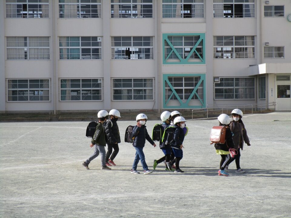 低学年は、5限で終了ですので1.2年生下校をしています。