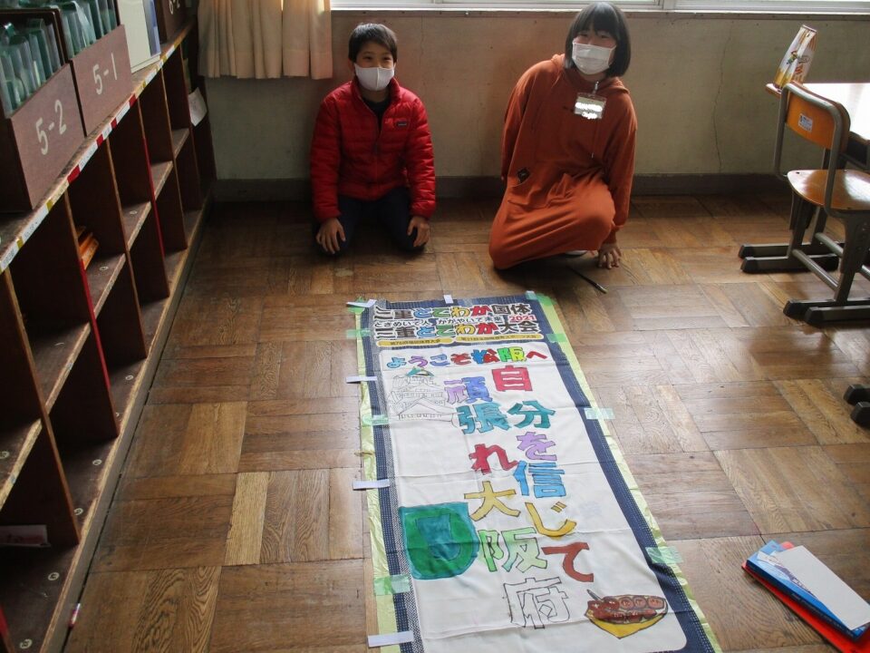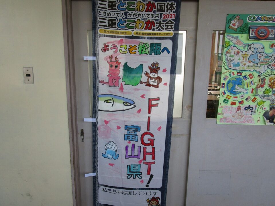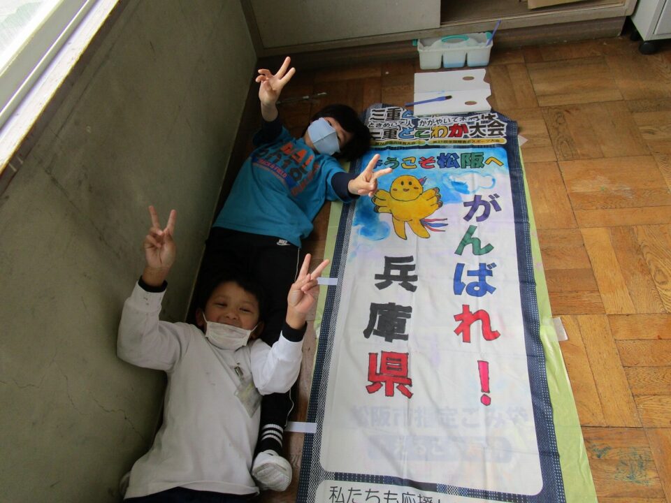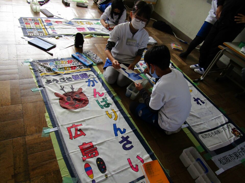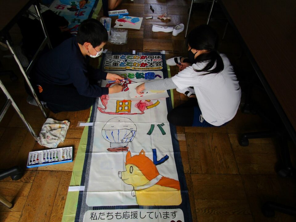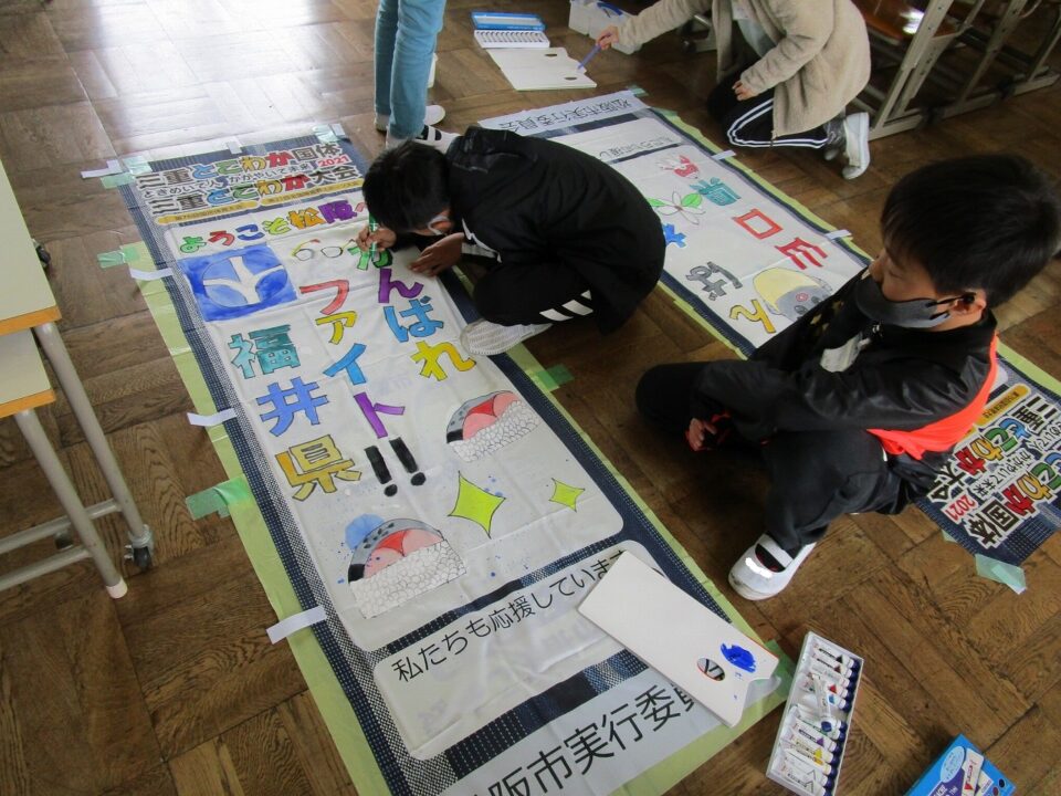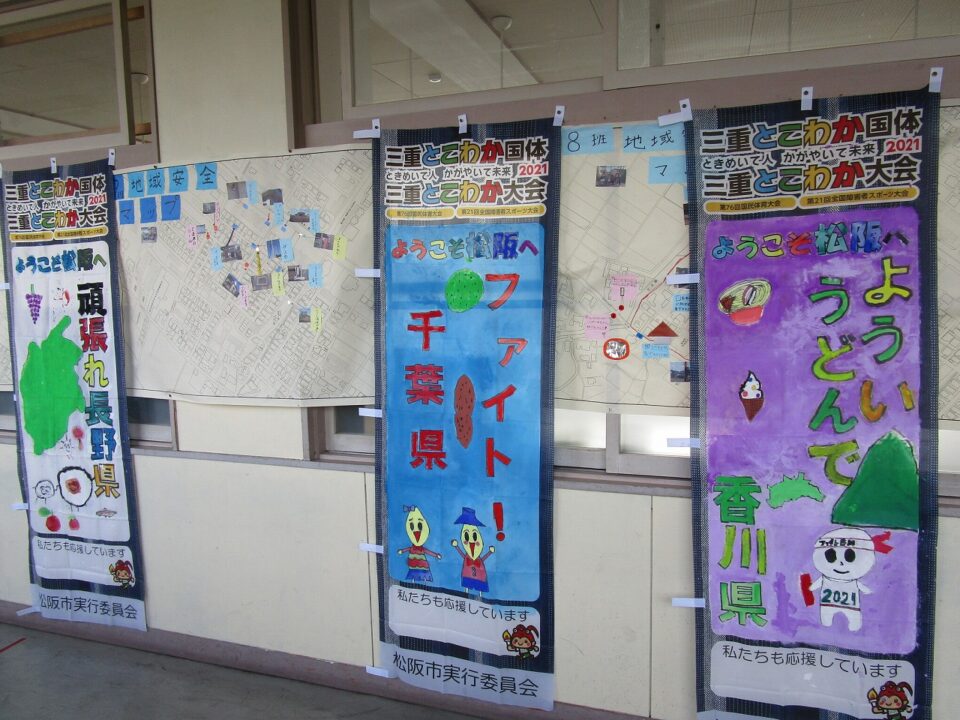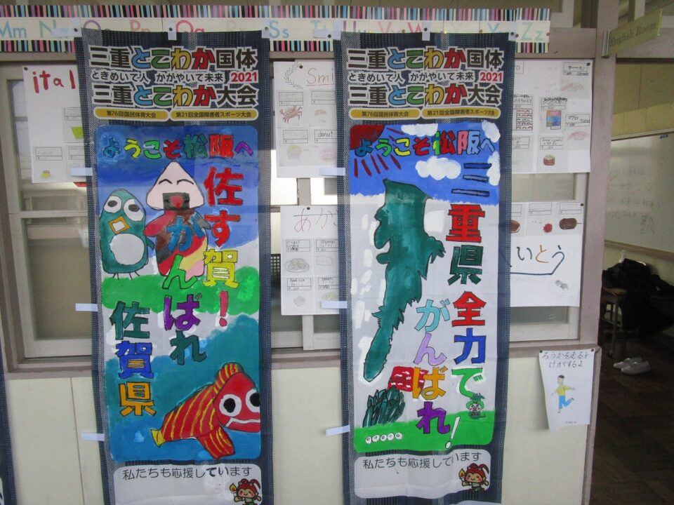松江小まつえしょうでは、とこわか国体こくたい応援おうえんする『のぼりばた』を作成さくせいしています。