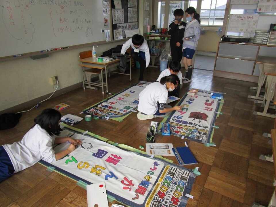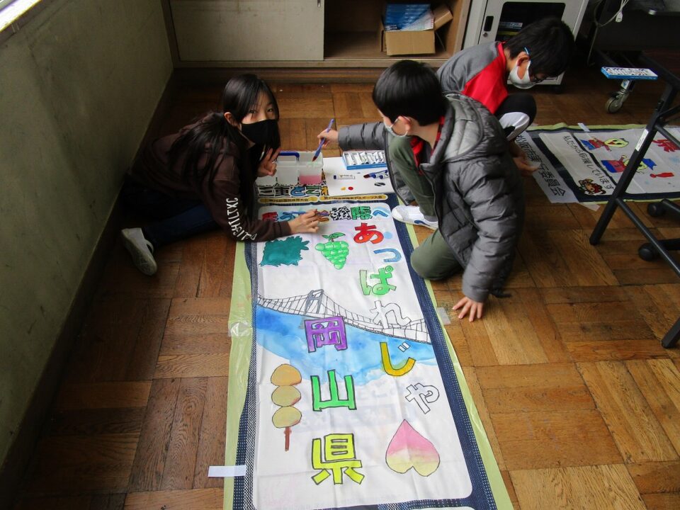 午後ごごからは、4-1がんでいました。各都道府県かくとどうふけん特産とくさんやキャラクターなどをしっかり調しらべてつくげています。