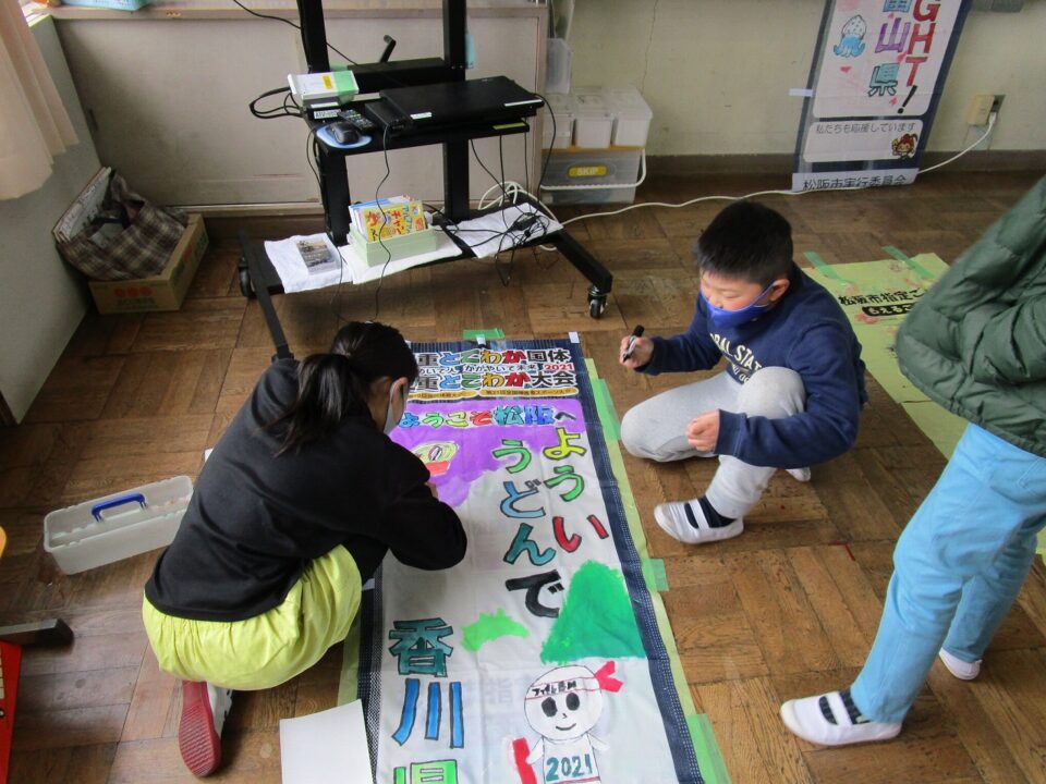 とこわか国体こくたい応援おうえんのぼりばた作成中さくせいちゅう