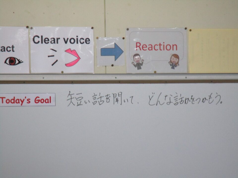 今日の学習は、「短い話をイラストを見ながら英語で聴いて、どんなことを言っているかをつかむ」です。