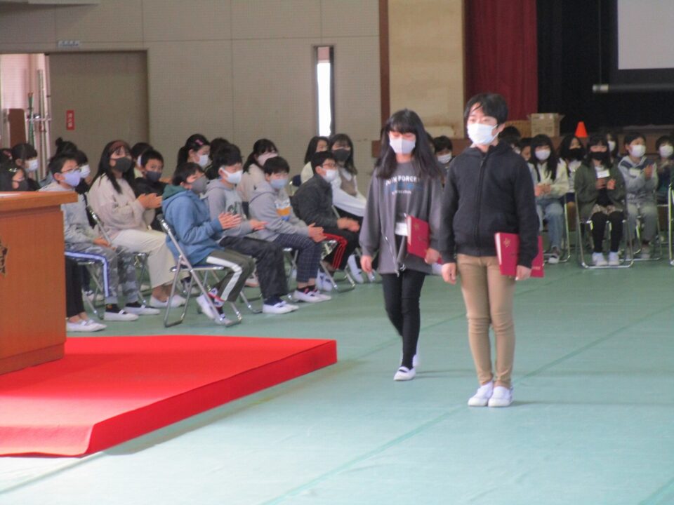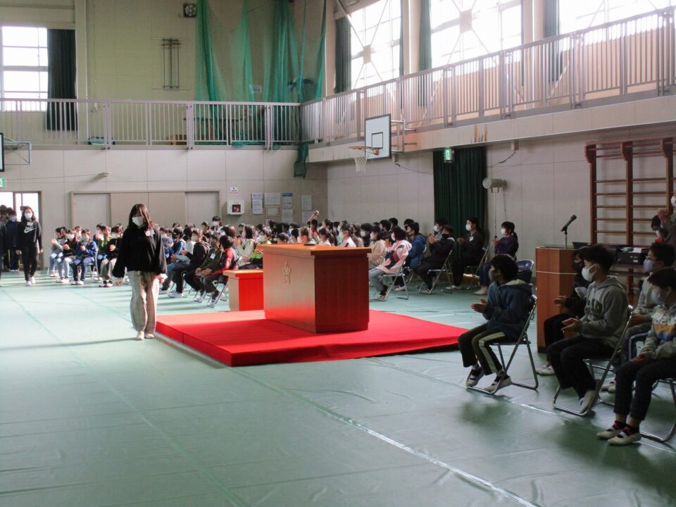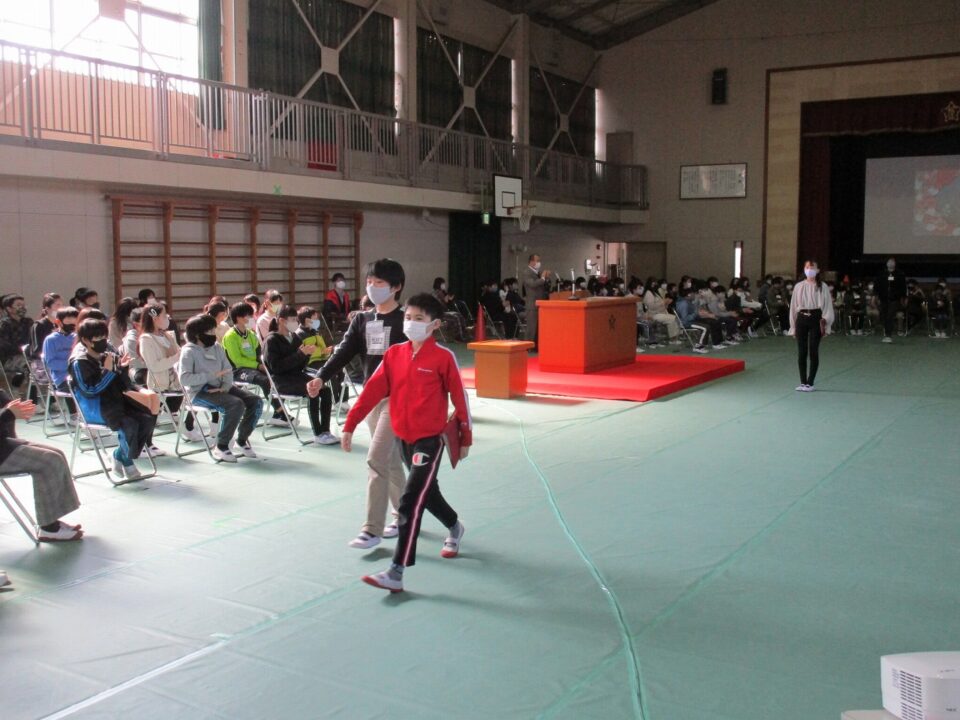 当日、保護者の方に座っていただく席に4年生、5年生が座りました。