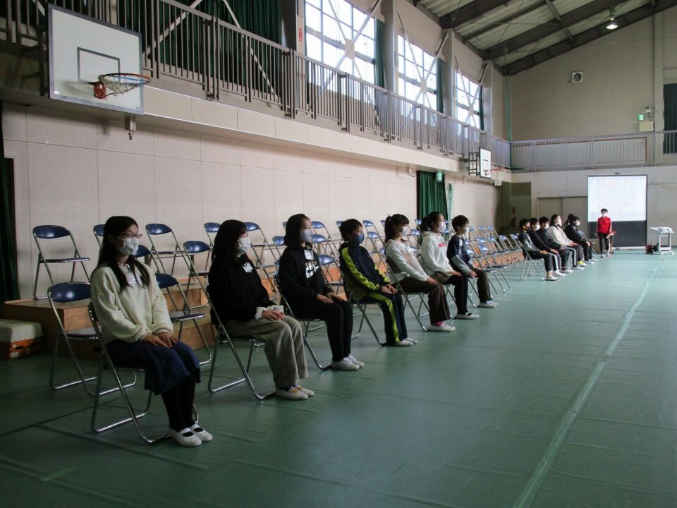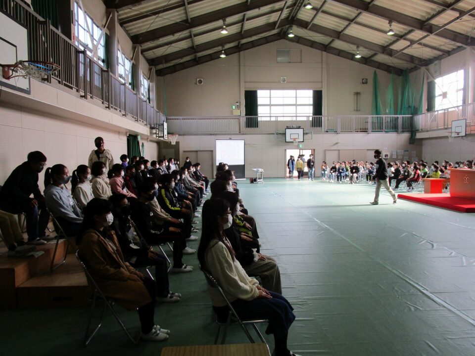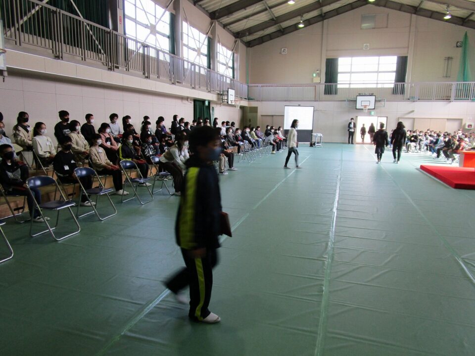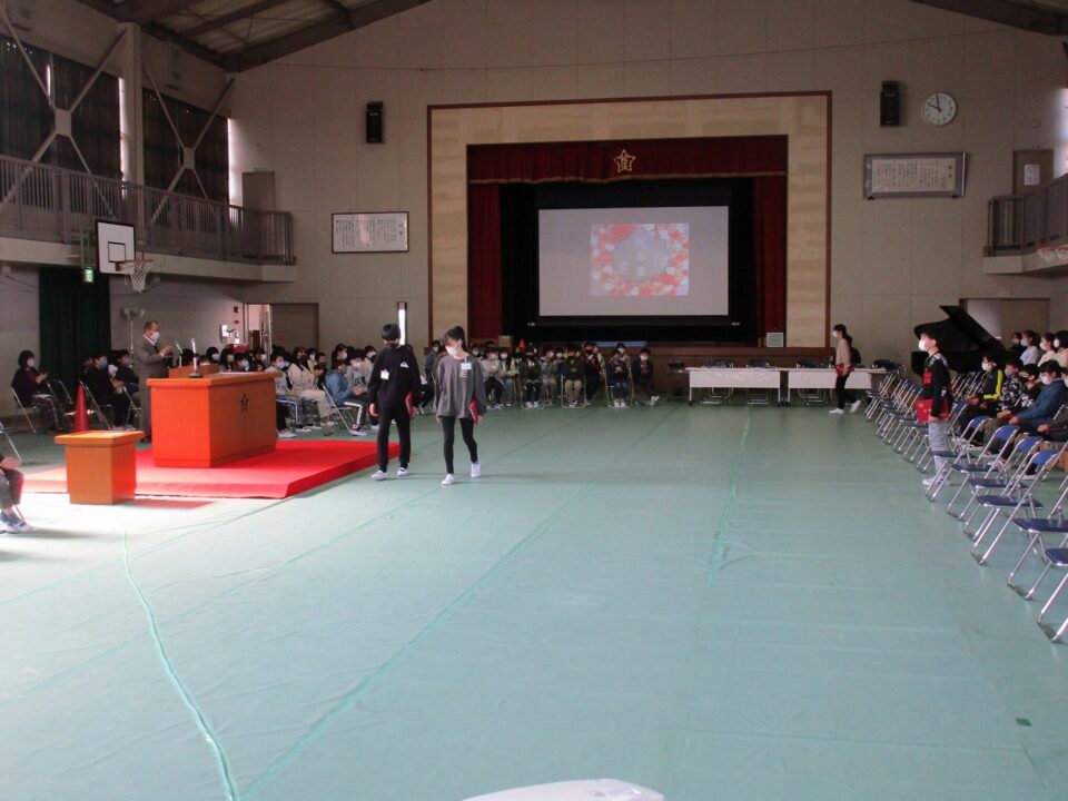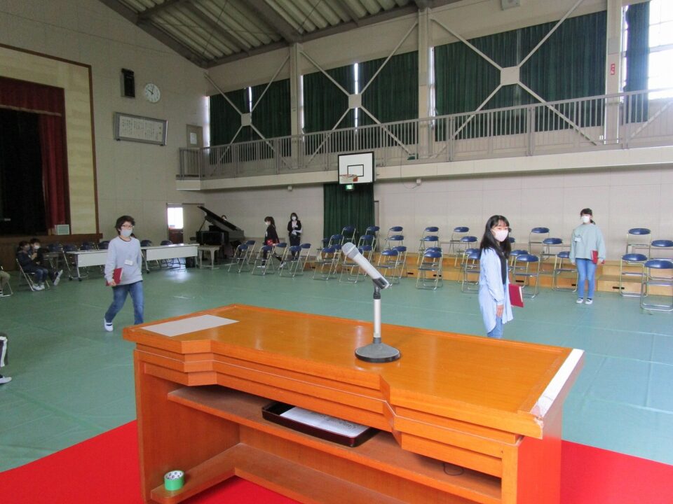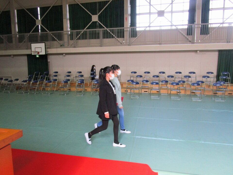 保護者の方には、在校生の座っている席をご覧になっていただき、当日のイメージをしていただければと思います。