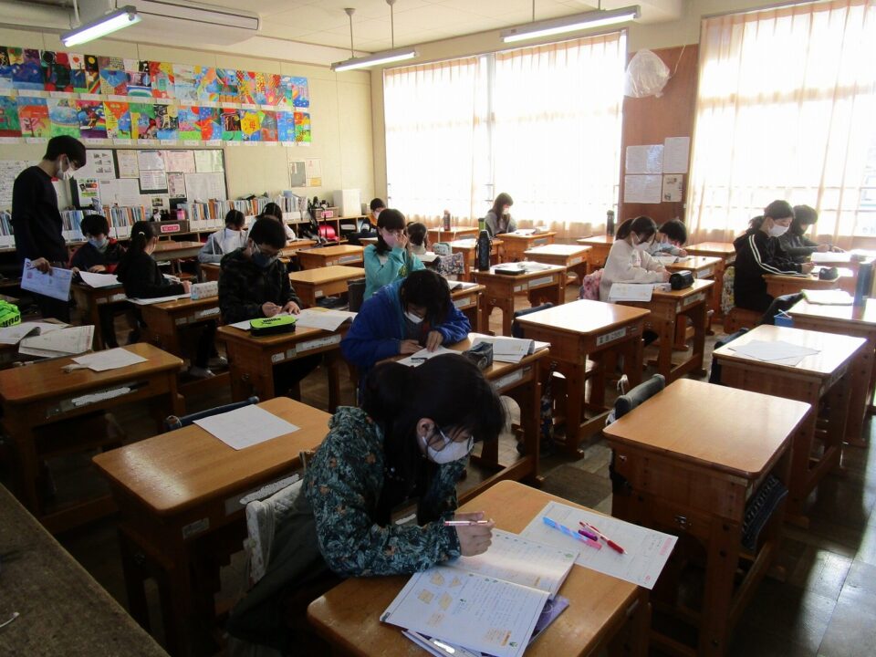 お花は、卒業式式場に飾られた豪華な生け花を各クラスや学年に分け、各教室等に飾りました。