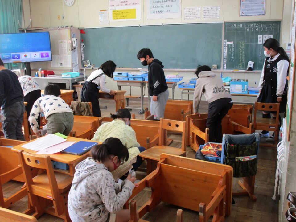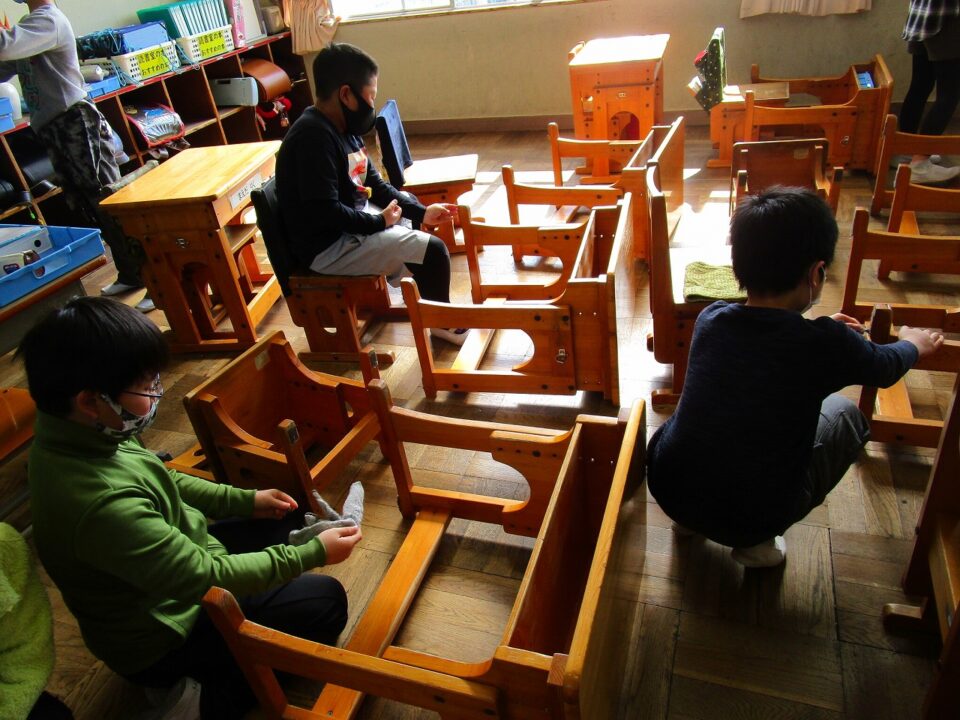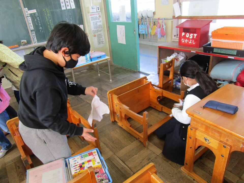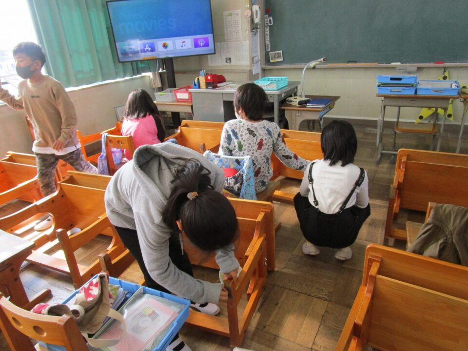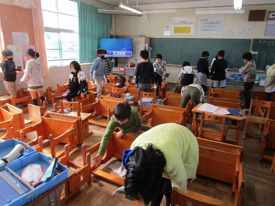 ホーム > 日々の活動の様子 / 2020年度 学習(がくしゅう)の様子(ようす)3‐2,4年生(ねんせい) いよいよあと2日(ふつか)となりました。 ここまで本当(ほんとう)によくがんばってきましたね。 3-2では、机(つくえ)の脚(あし)についた汚(よご)れを取(と)り、明日(あす)の机(つくえ)・椅子移動(いすいどう)に備(そな)えていました。 4年生(ねんせい)では、今年度(こんねんど)でお別(わか)れする子(こ)との思(おも)い出作(でづく)りに一緒(いっしょ)にお楽(たの)しみの鬼(おに)ごっこをしました。 シェアする Twitter でシェア はてなブックマークに保存 LINE でシェア Facebook でシェア Pocket に保存 Feedly で購読 関連投稿 日々の活動の様子 / 2020年度 もうすぐ夏休(なつやす)み! 2024年度 / 日々の活動の様子 英語(えいご)ふれあい活動(かつどう) ~1年生(ねんせい)~ 日々の活動の様子 / 2021年度 授業参観(じゅぎょうさんかん) 3限目(げんめ) 日々の活動の様子 / 2020年度 3年生書写作品(ねんせいしょしゃさくひん)「川(かわ)」 日々の活動の様子 / 2020年度 3年生社会見学(ねんせいしゃかいけんがく)出発(しゅっぱつ) 日々の活動の様子 / 2023年度 子(こ)どもしょんがいリハーサル 前の投稿 PTA本部役員(ほんぶやくいん)さん手(て)づくりDVD 次の投稿 今年度(こんねんど)もよくがんばりましたね。