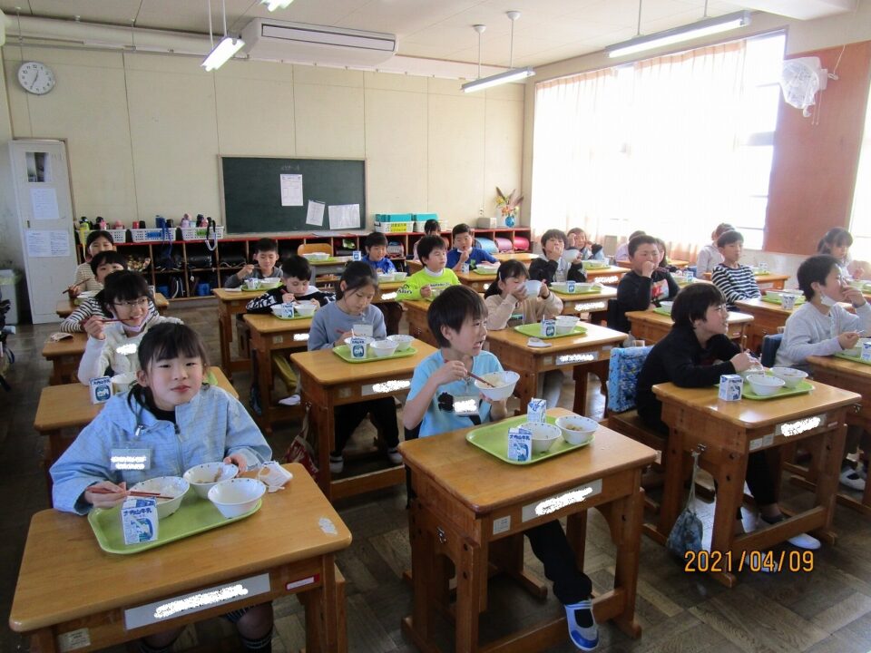 年生ねんせい、5年生ねんせい、6年生ねんせい昨年さくねんまでのような感染症対策かんせんしょうたいさくをしながら、給食きゅうしょくをいただきました。