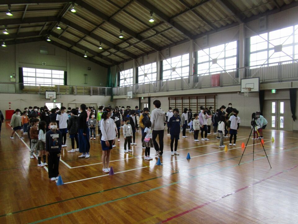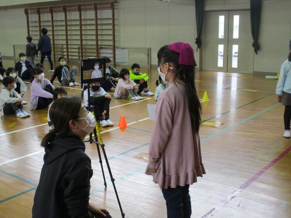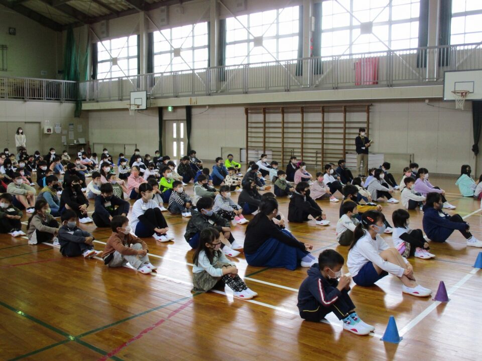 体育館には、1年生と6年生が入場し、2年生~5年生は各教室でZOOMを使って、対面式を行いました。