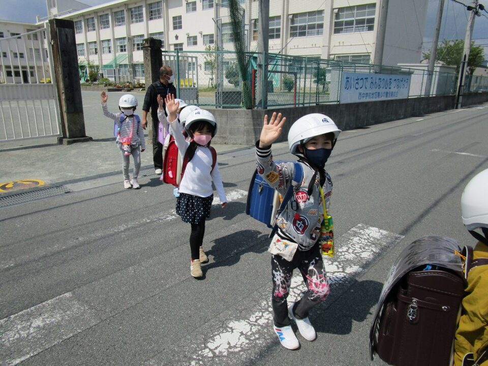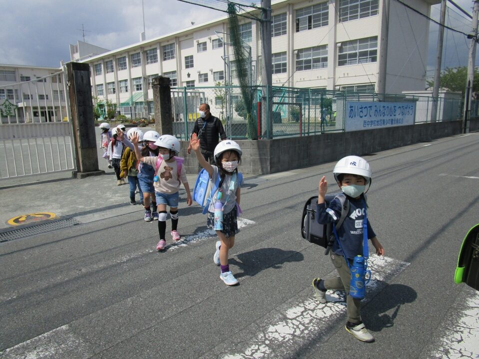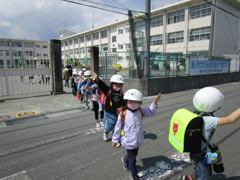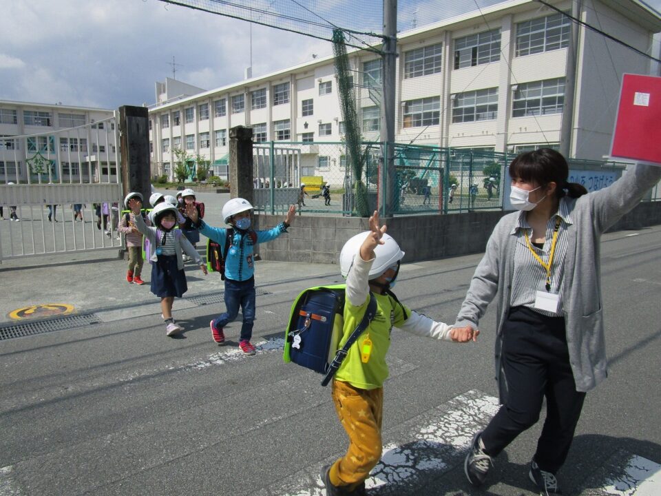 松江小の子どもたちは、道を渡る時は右、左を確認し、手をあげて渡り、ドライバーさんにはお礼を言っています。