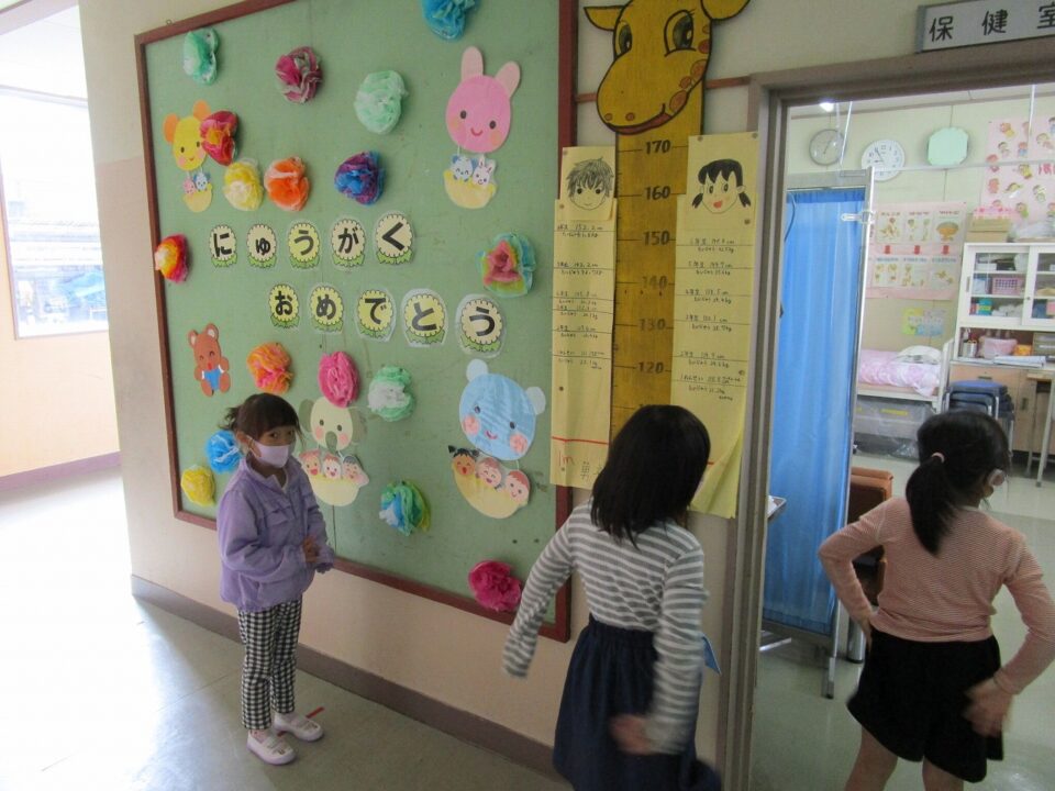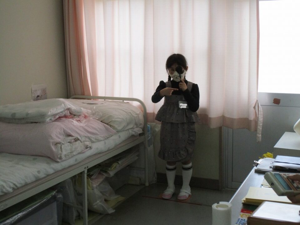 今日は、1年生の子たちは視力測定をしました。