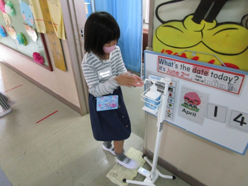 部屋に入る時と出る時は、消毒をします。