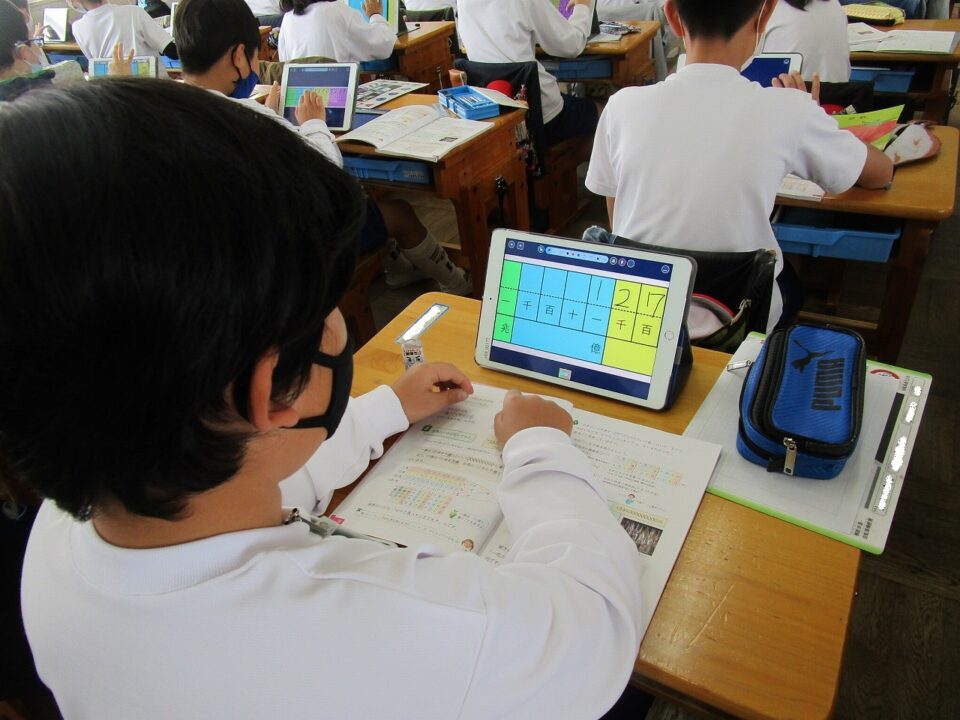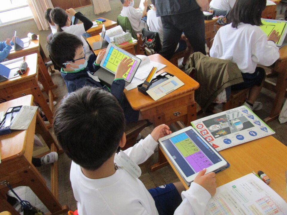 4年生の算数でタブレットを使って、学習しました。ずいぶん、使い慣れてきました。