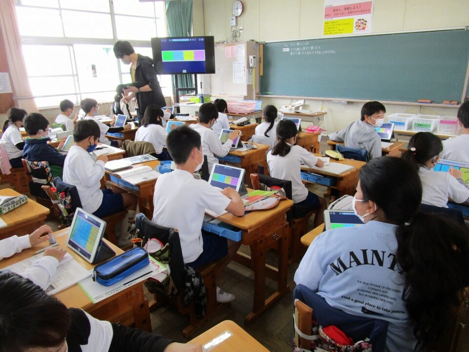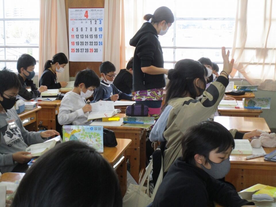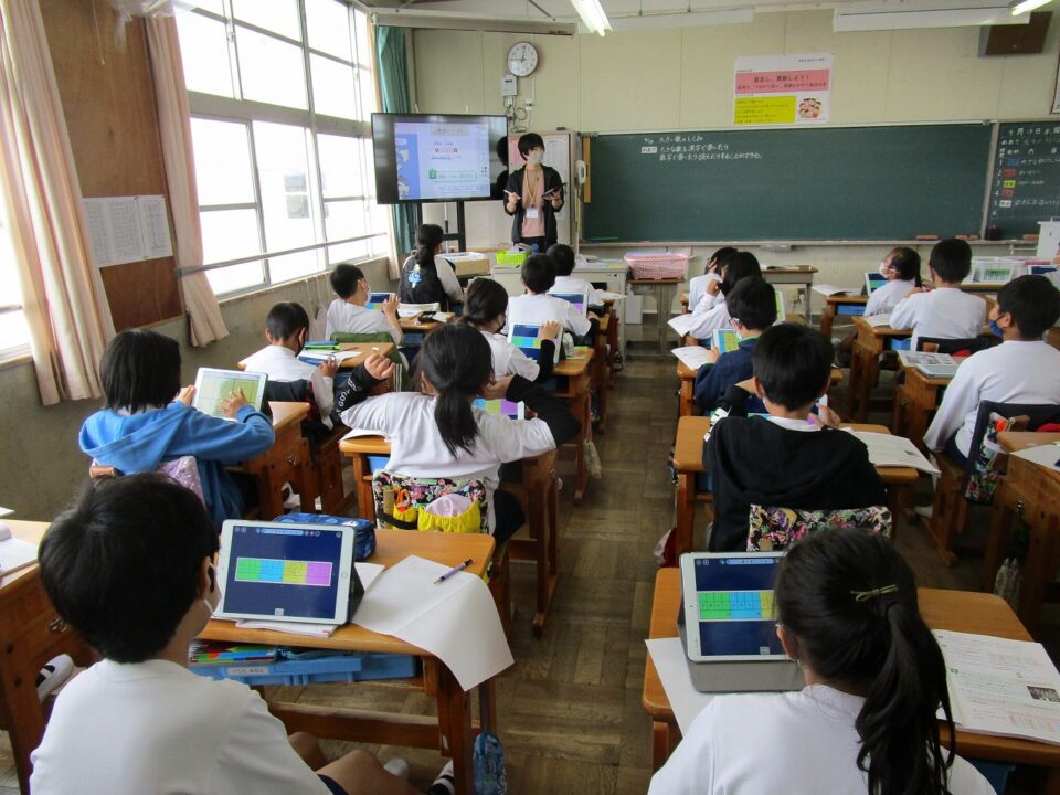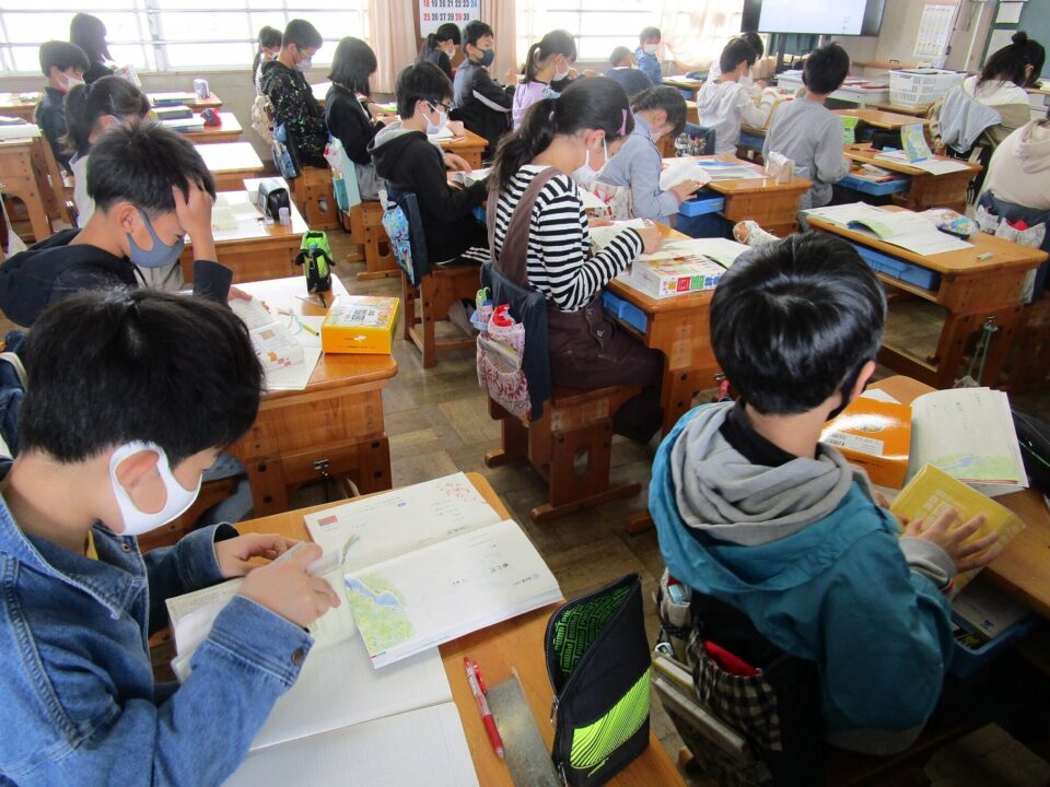 5年生や6年生では、国語辞書を使い、言葉調べをしていました。