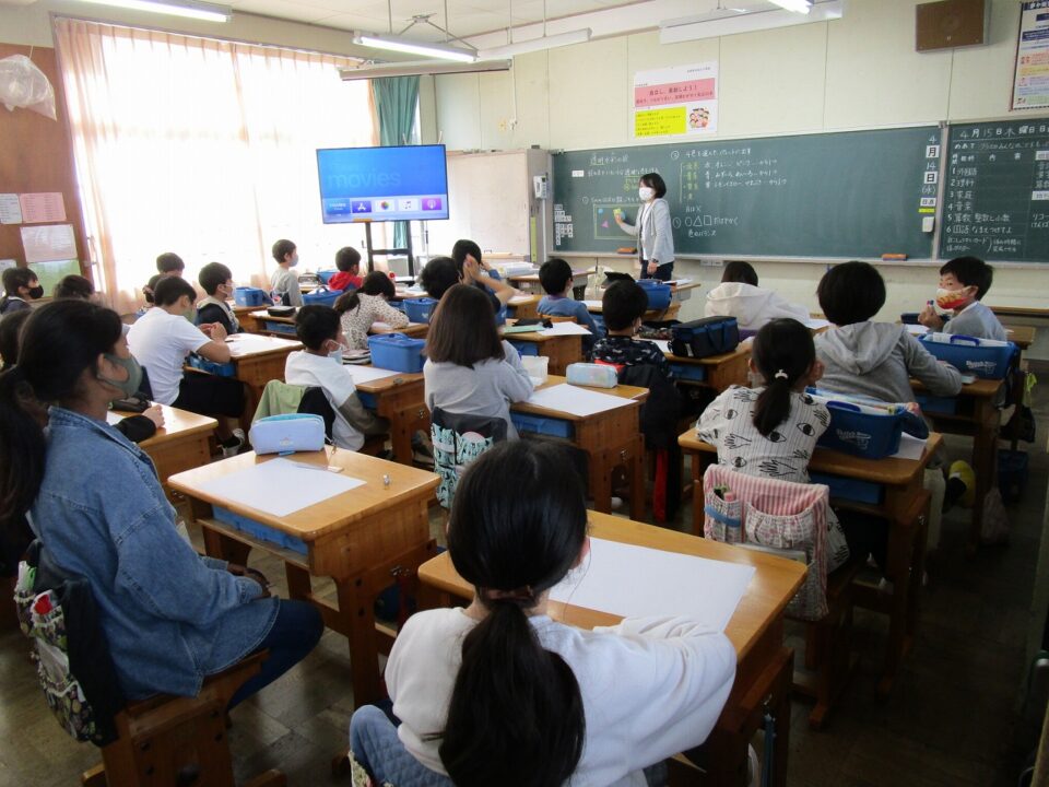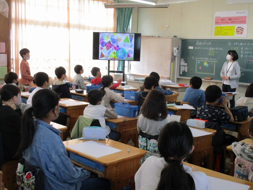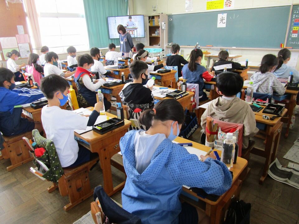 5年生で図工や4年生では習字をしていました。授業参観に作品を見ていただけるようです。