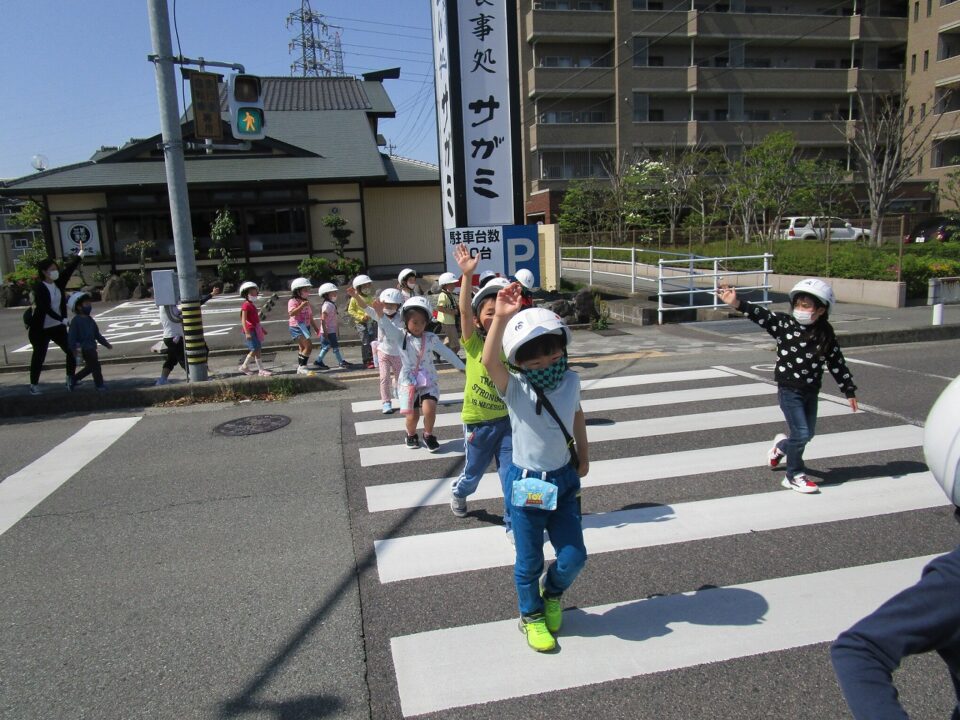 「あそこに止まれがある!!」の声や、道を渡る時に手をあげて「ありがとうございました。」と頭を下げる姿など、すばらしかったです。