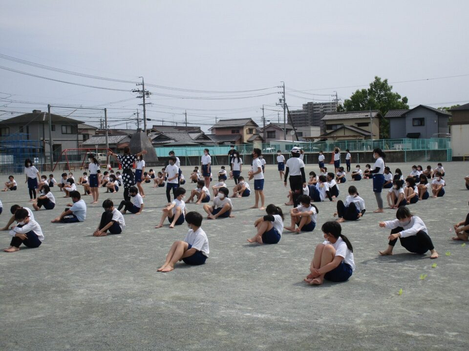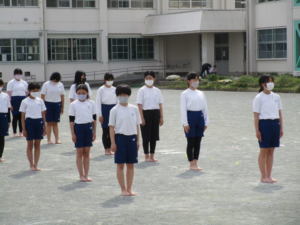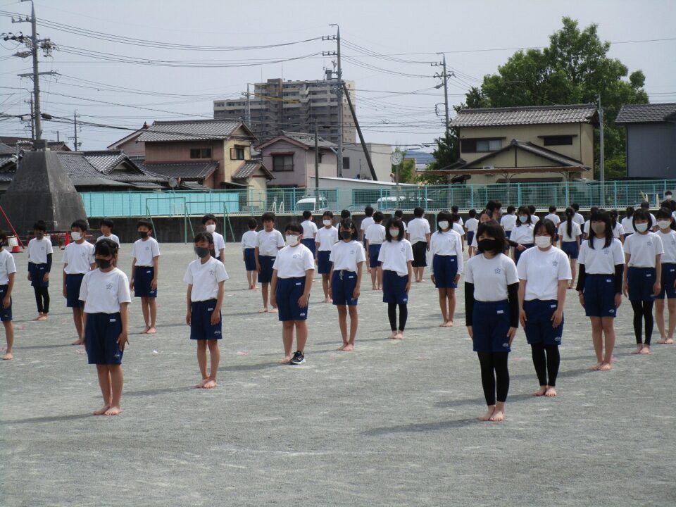今日は、5.6年生がトップバッターで外練習を行いました。