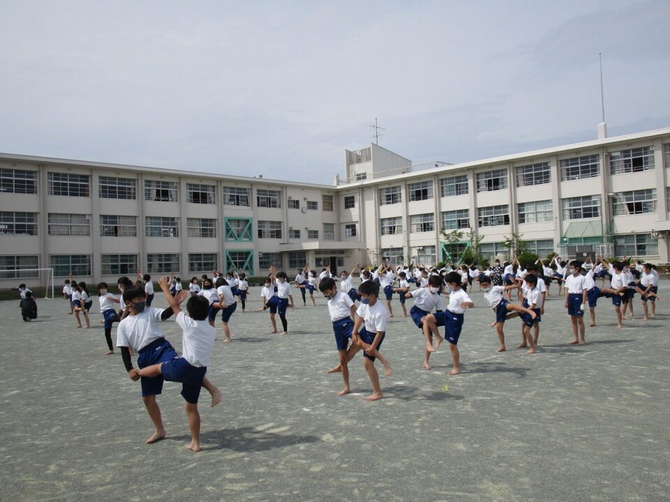 今日は、5.6年生がトップバッターで外練習を行いました。