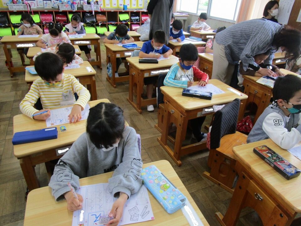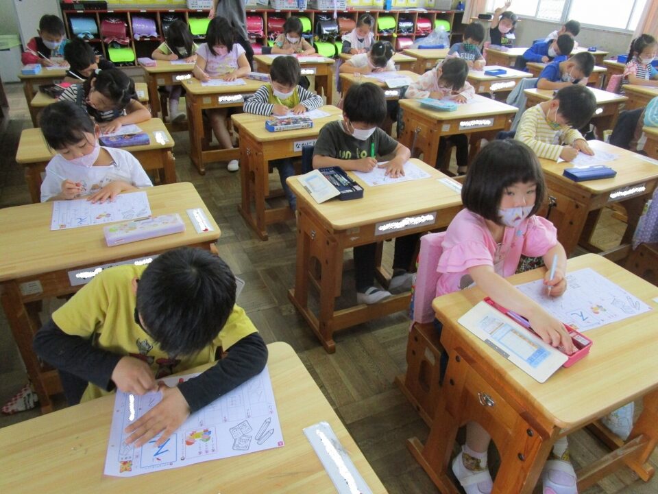 2組は、国語でした。一生懸命、春の様子を色で表したり、ひらがなを書いたりしました。