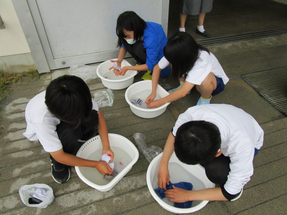 ホーム > 日々の活動の様子 / 2021年度 6年生(ねんせい) 家庭科(かていか) 靴下(くつした)の洗濯(せんたく) 6年生(ねんせい)では、家庭科(かていか)で靴下(くつした)の洗濯(せんたく)をしました。 洗剤(せんざい)を入(い)れて洗(あら)うと、汚(よご)れが浮(う)き出(で)て水(みず)の色(いろ)が変(か)わってくる様子(ようす)を見(み)ながら、きれいに洗(あら)い、すすぎをして乾(かわ)かしました。 シェアする Twitter でシェア はてなブックマークに保存 LINE でシェア Facebook でシェア Pocket に保存 Feedly で購読 関連投稿 日々の活動の様子 / 2023年度 学習発表会(がくしゅうはっぴょうかい) 〜3年生(ねんせい)〜 日々の活動の様子 / 2021年度 夏休(なつやす)み前集会(まえしゅうかい) 日々の活動の様子 / 2022年度 ベルマークで購入(こうにゅう)しました 2024年度 / 日々の活動の様子 「まもってくれてありがとう運動(うんどう)」のモデル校指定式(こうしていしき)がありました 日々の活動の様子 / 2023年度 授業参観(じゅぎょうさんかん)ありがとうございました 日々の活動の様子 / 2023年度 調理実習(ちょうりじっしゅう) 前の投稿 人権委員(じんけんいいん)朝(あさ)の読(よ)み聞(き)かせ 次の投稿 学級掃除(がっきゅうそうじ)