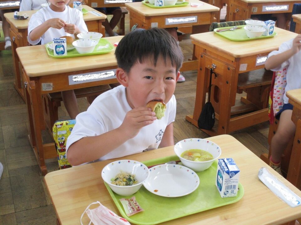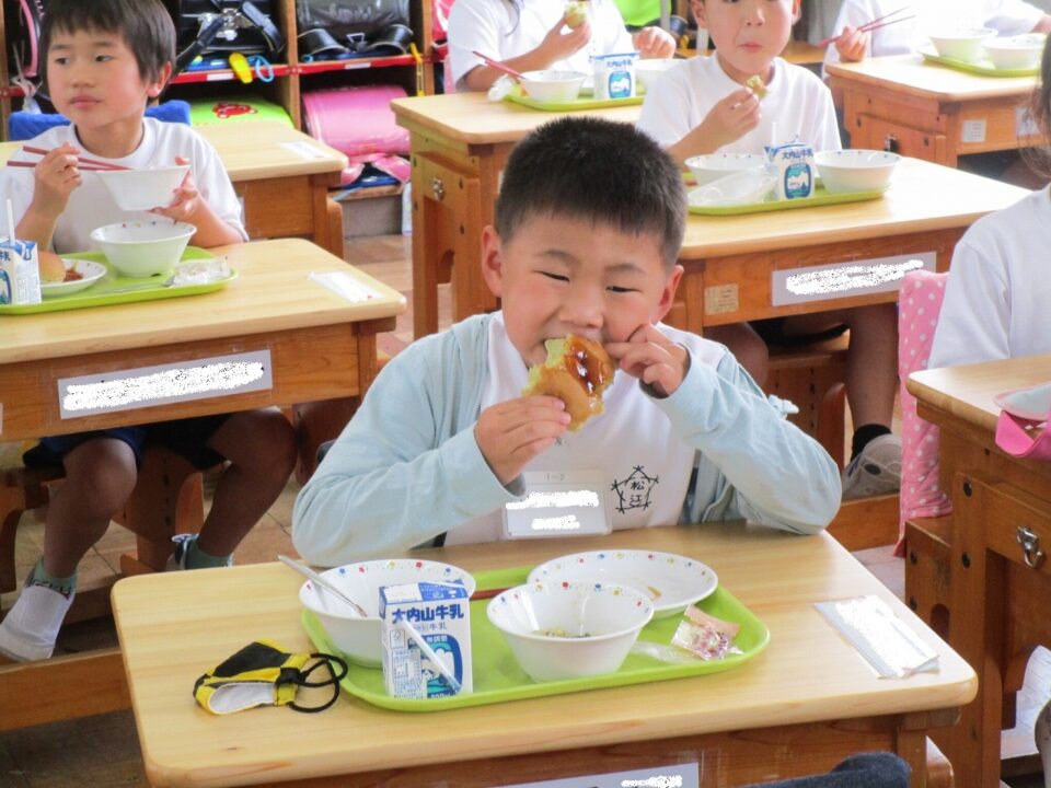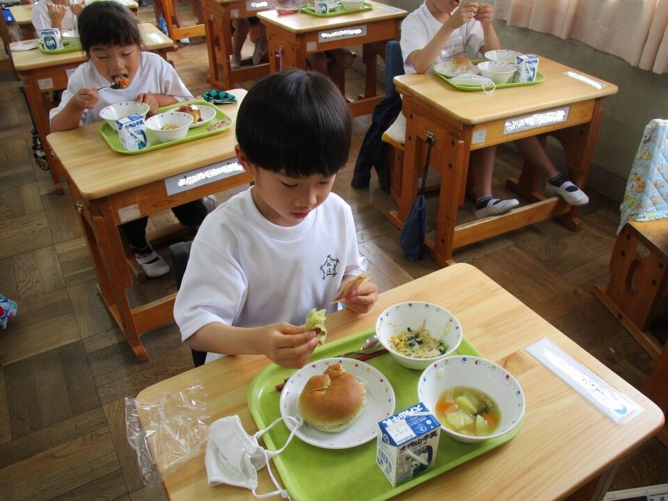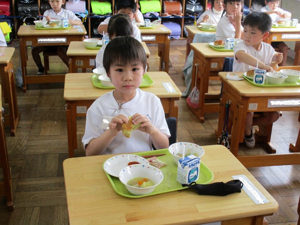 献立は、緑茶パン、牛乳、カレーポトフ、こんにゃくサラダ、メープルシロップでした。