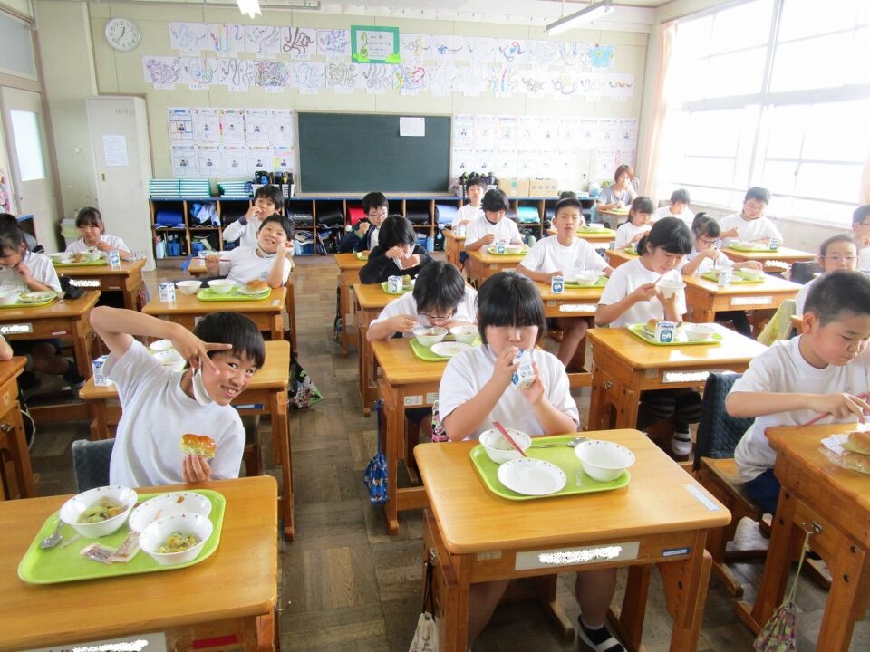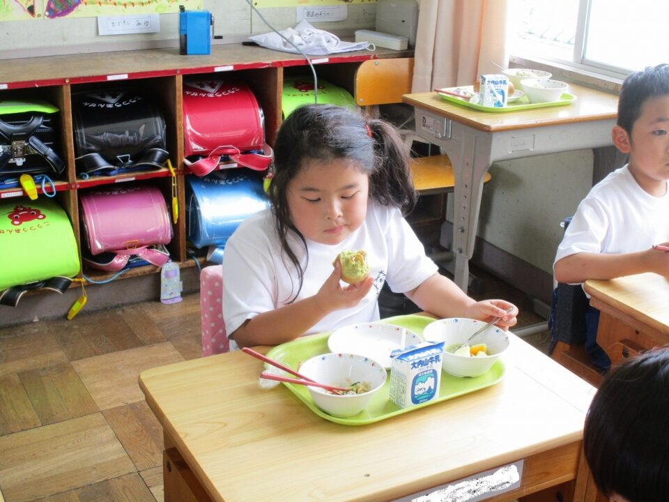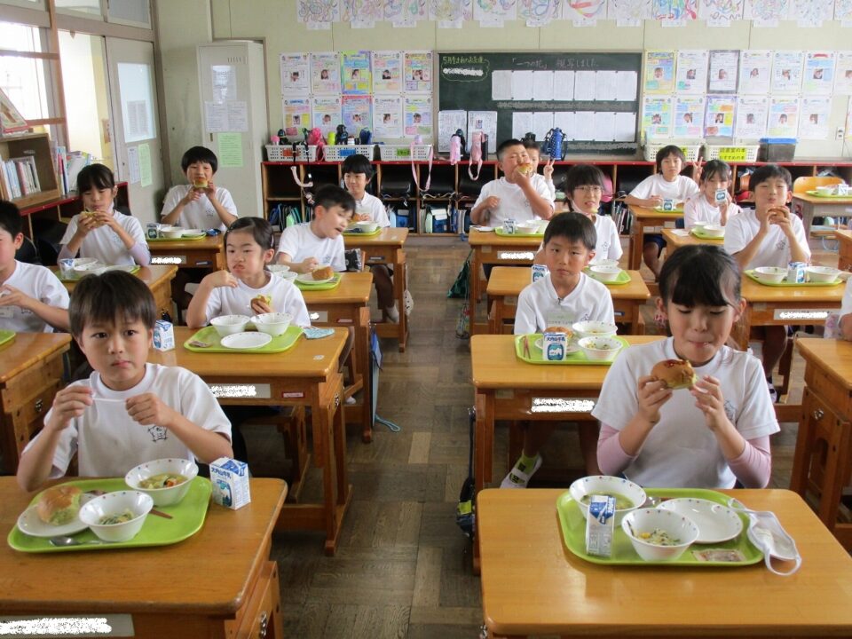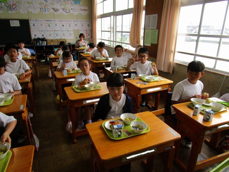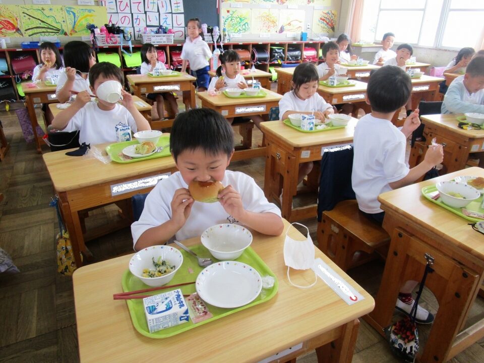 献立は、緑茶パン、牛乳、カレーポトフ、こんにゃくサラダ、メープルシロップでした。