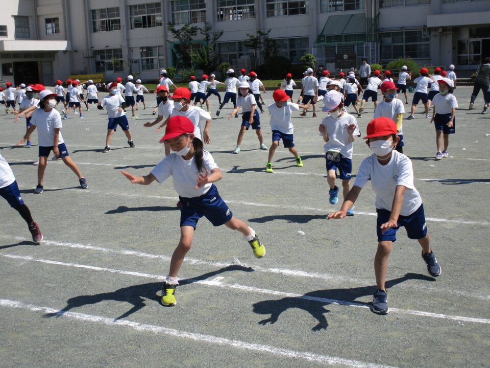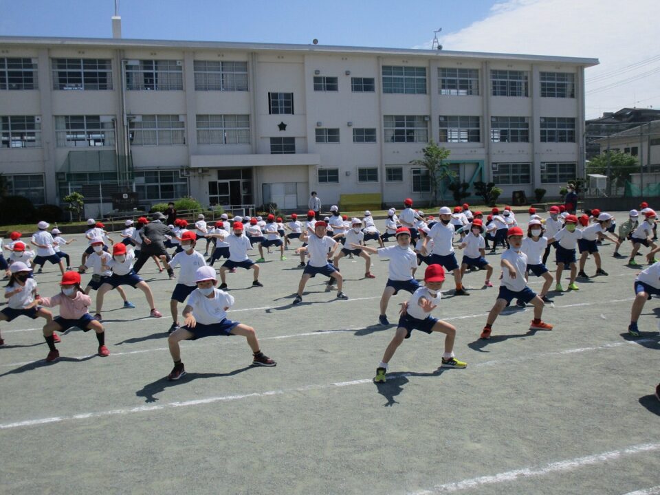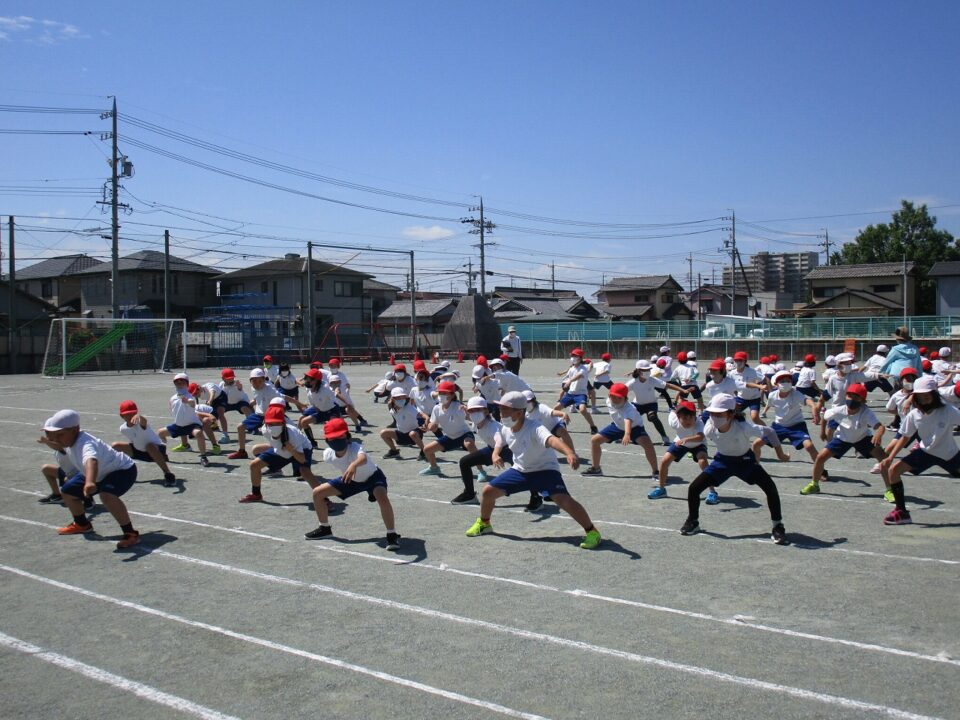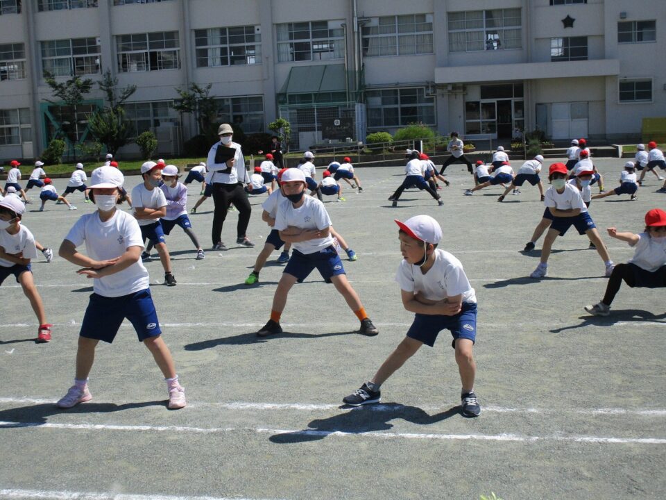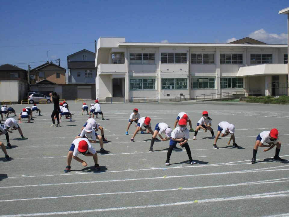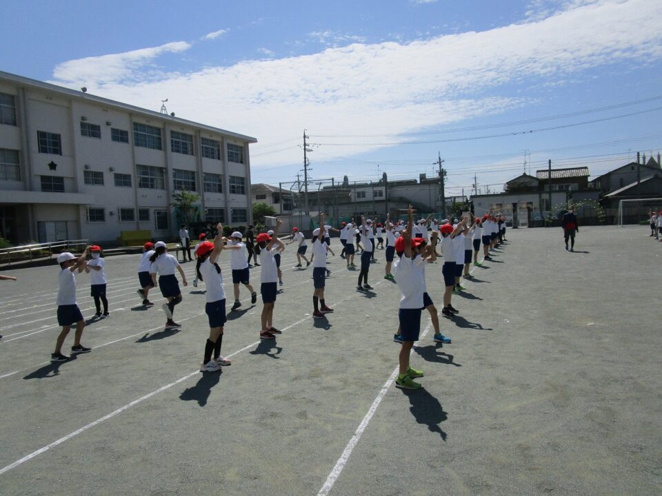 ようやく晴れたので、3.4年生も外で練習することができました。