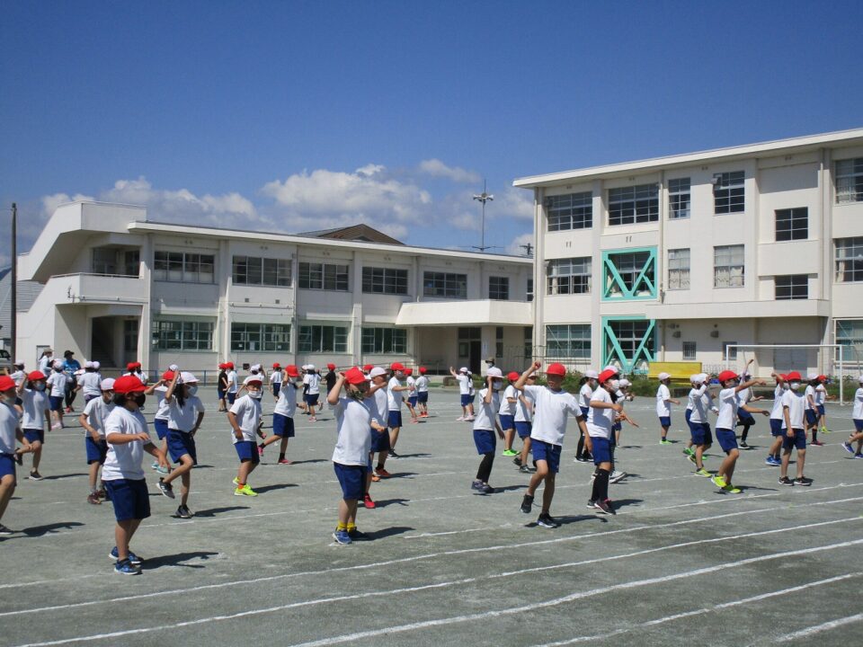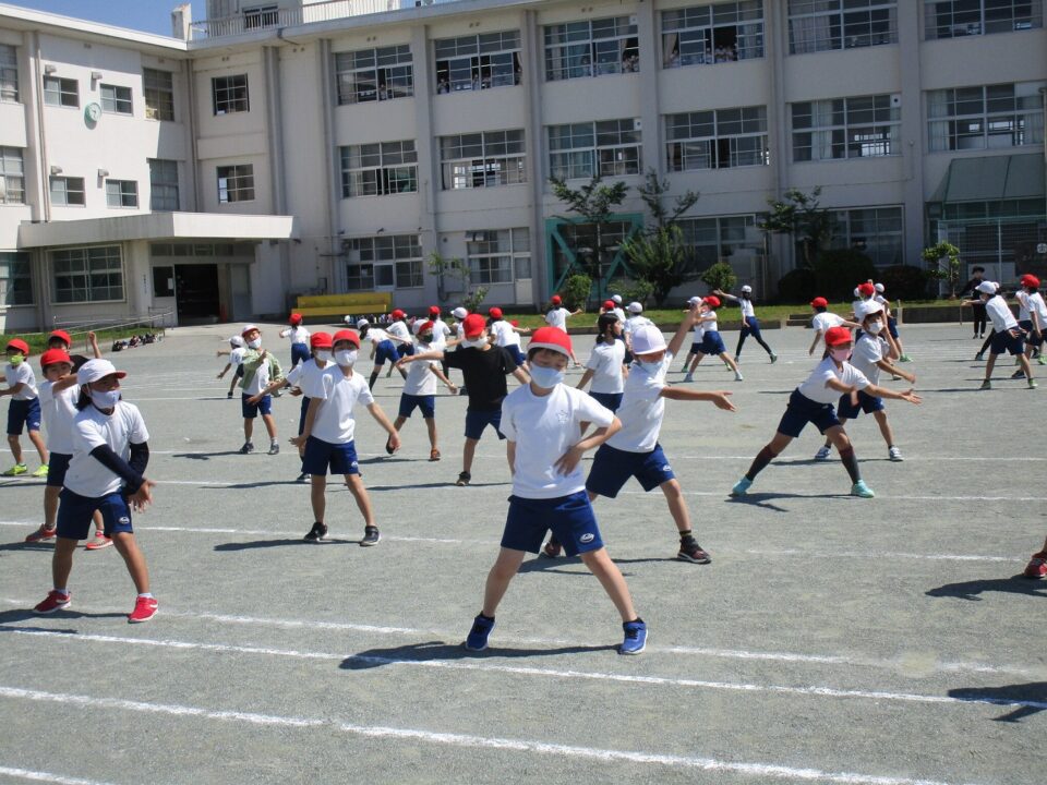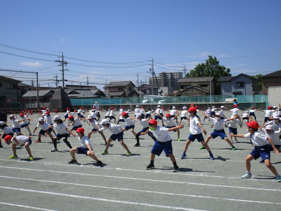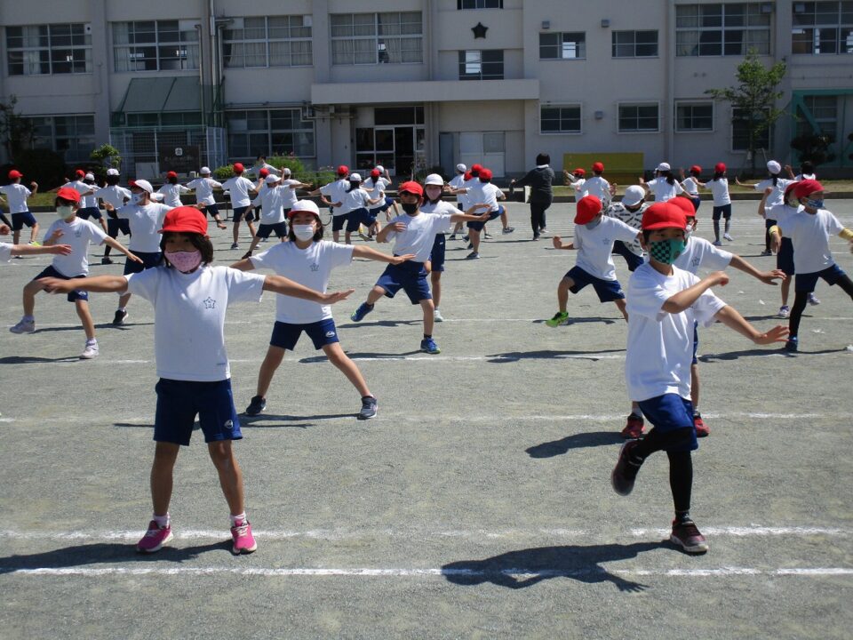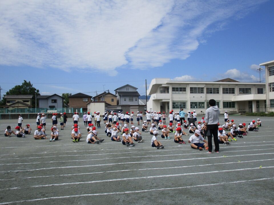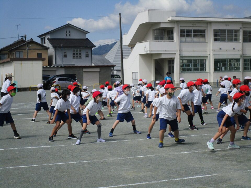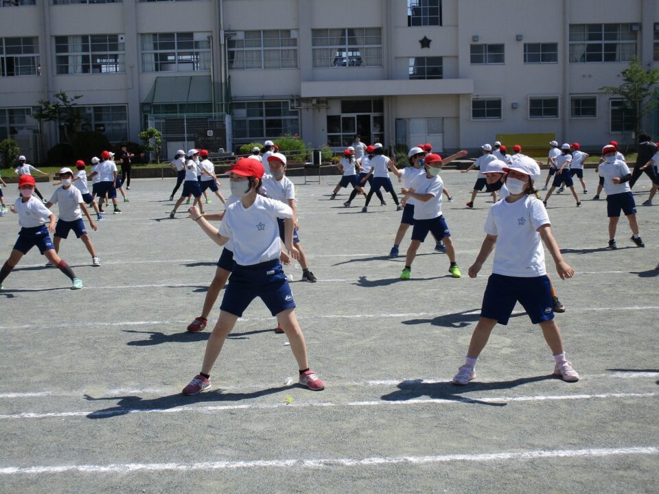 ようやく晴れたので、3.4年生も外で練習することができました。