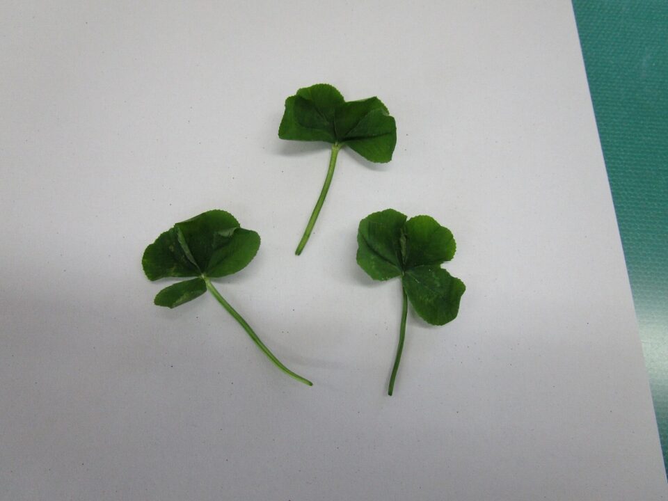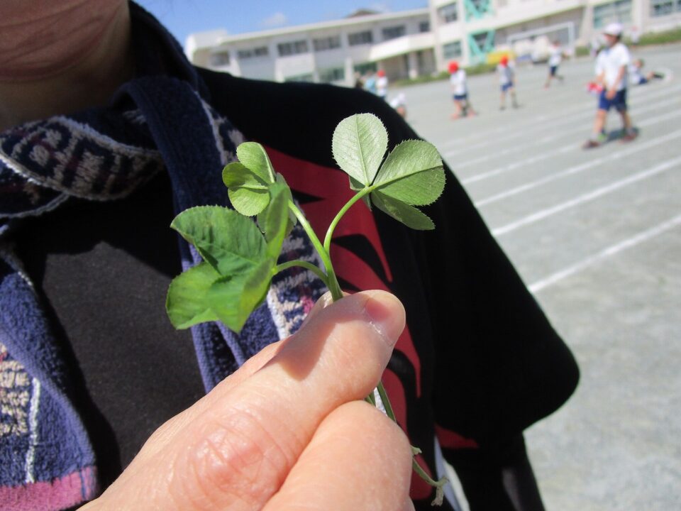 1限目と2限目の間の5分休憩に、子どもたちが四つ葉のクローバーを見つけてきてくれて、プレゼントしてくれました。