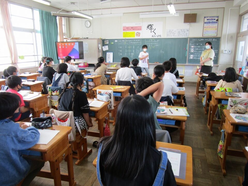 伝える時に黒板も使いながら、一生懸命みんなにわかってもらうように伝える姿勢が見られました。すてきです。何が言いたいのか、わかろうとする聴く側のみんなの目も真剣ですばらしかったです。