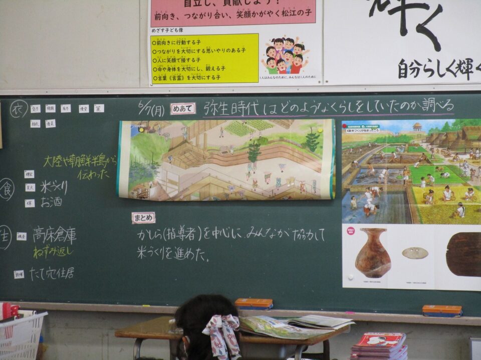 縄文時代から弥生時代へうつっていく時代の様子を学習していました。