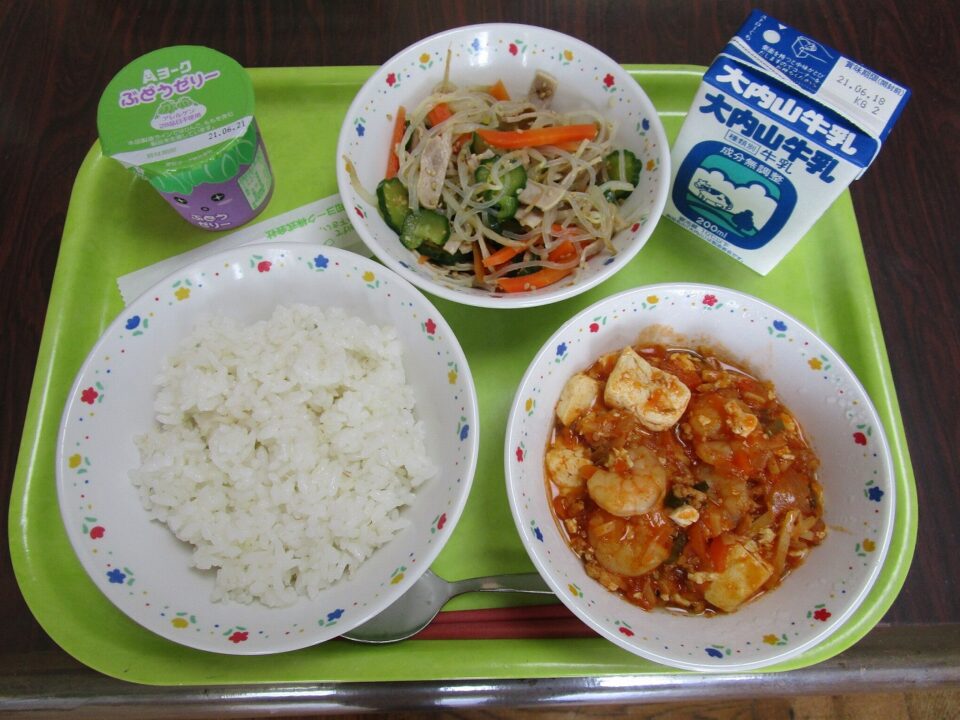 しかし、学校だより「ハーモニー」でもお知らせしましたように、ずっと運動会を延期しているため期限の短いグレープゼリーを26日(土)ではなく、今日の給食につけさせていただきました。