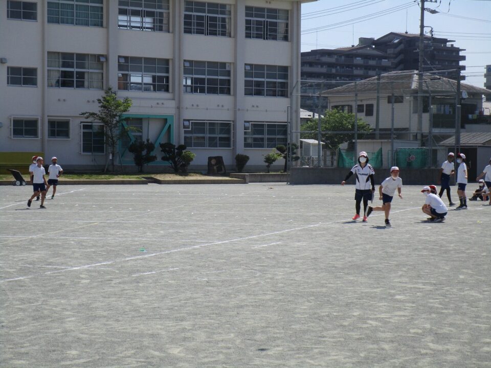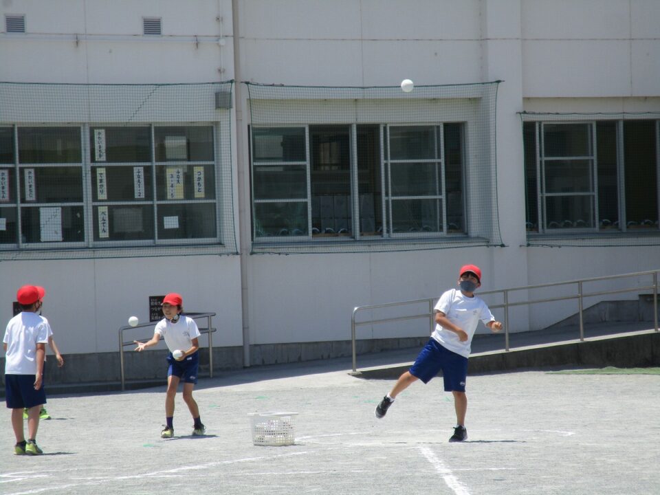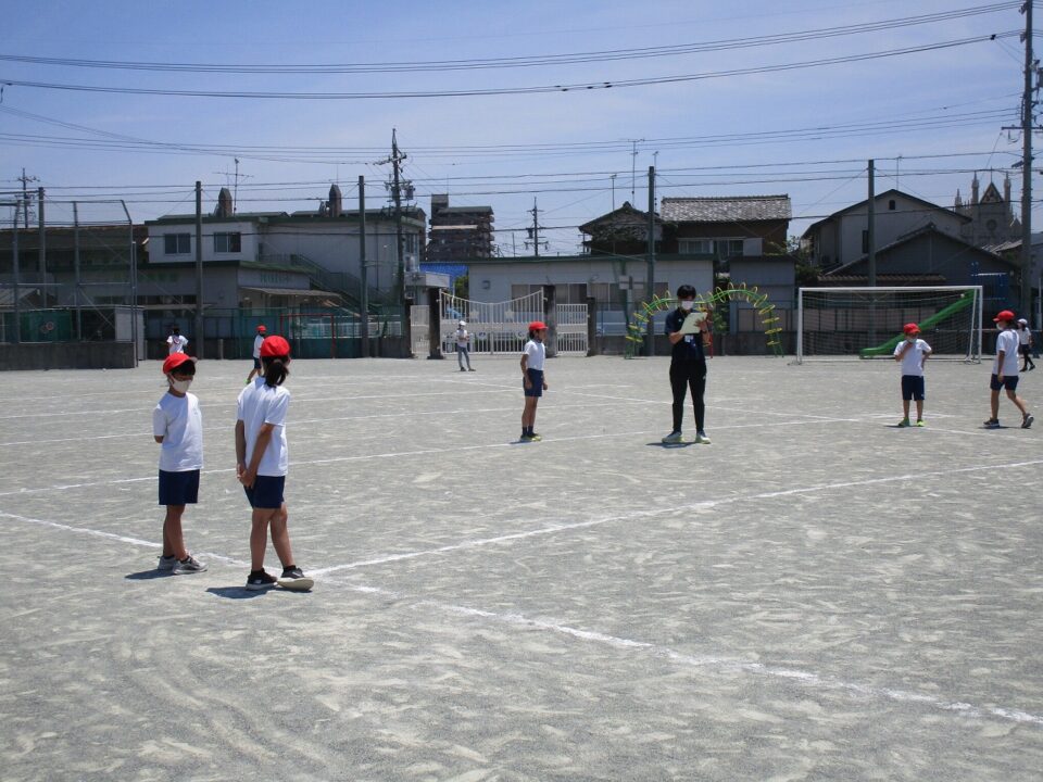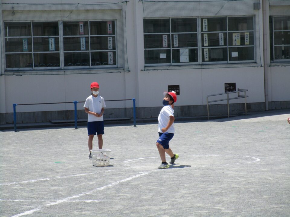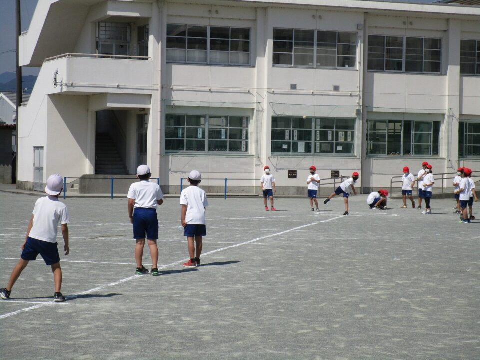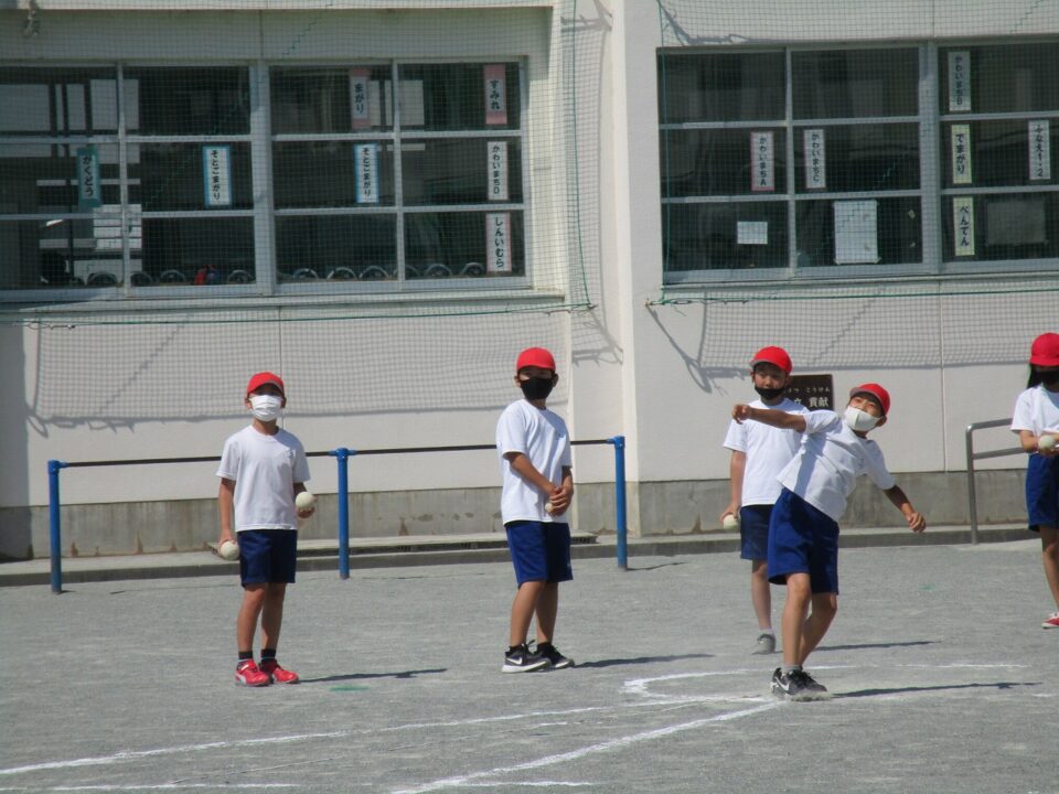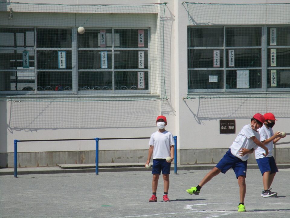 暑さ対策として、ソフトボール投げをしに外へ出ている間に、エアコンで教室を冷やしておいてあります。