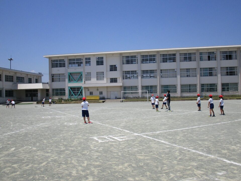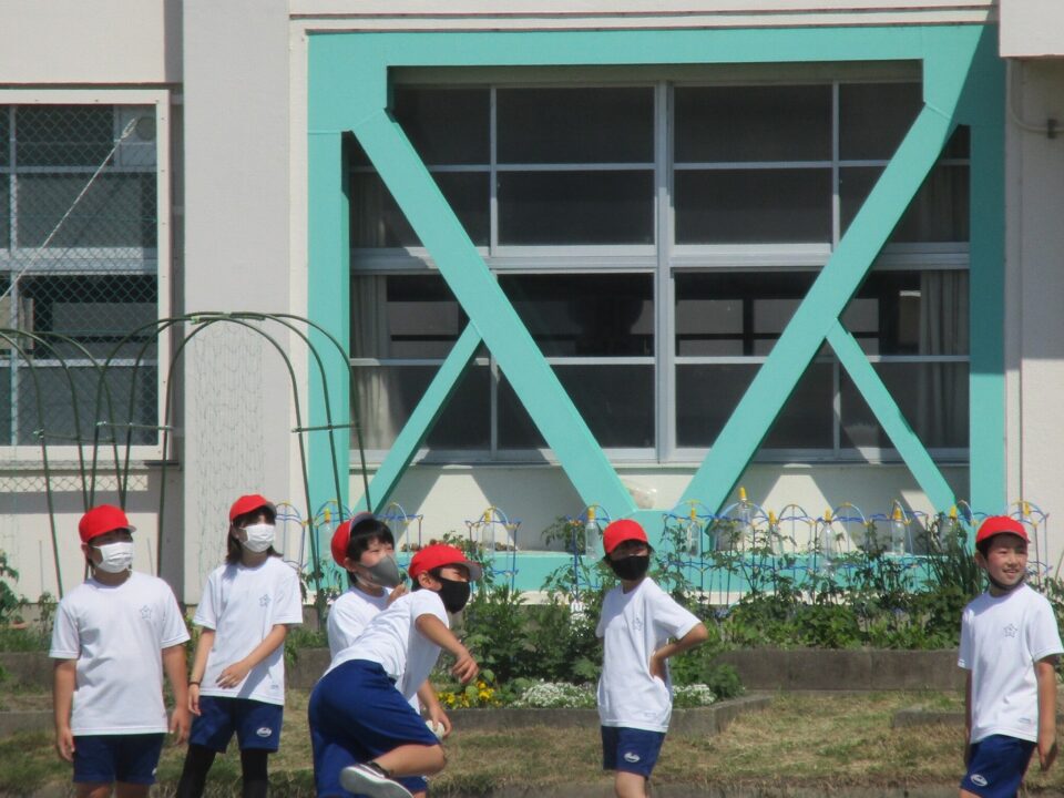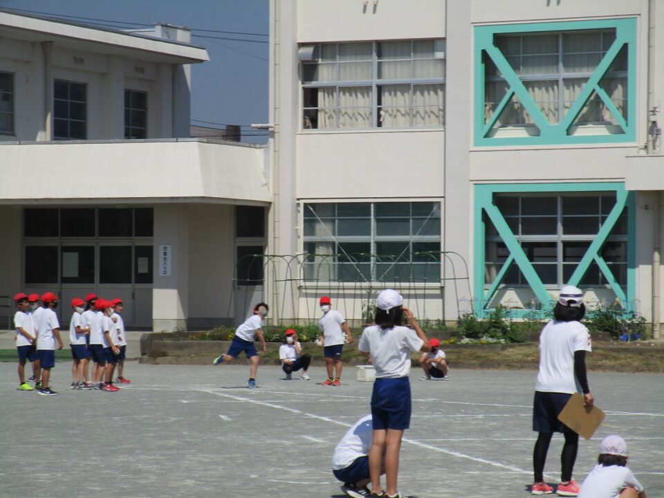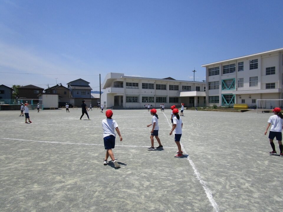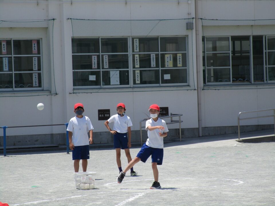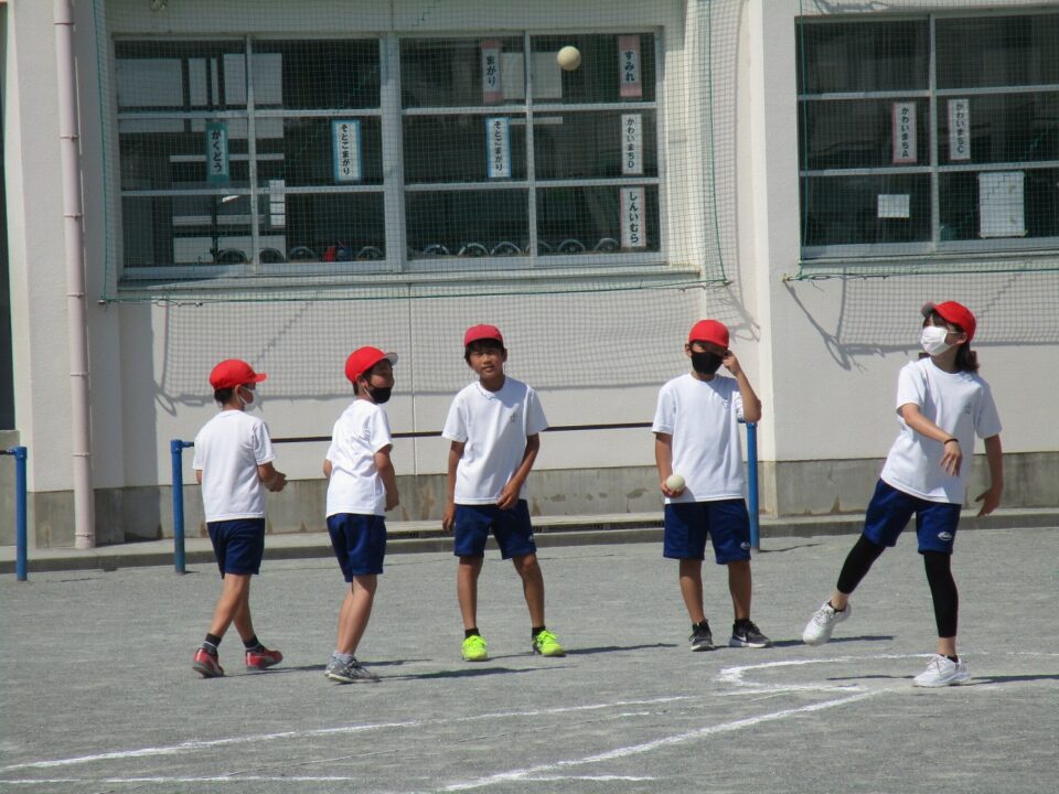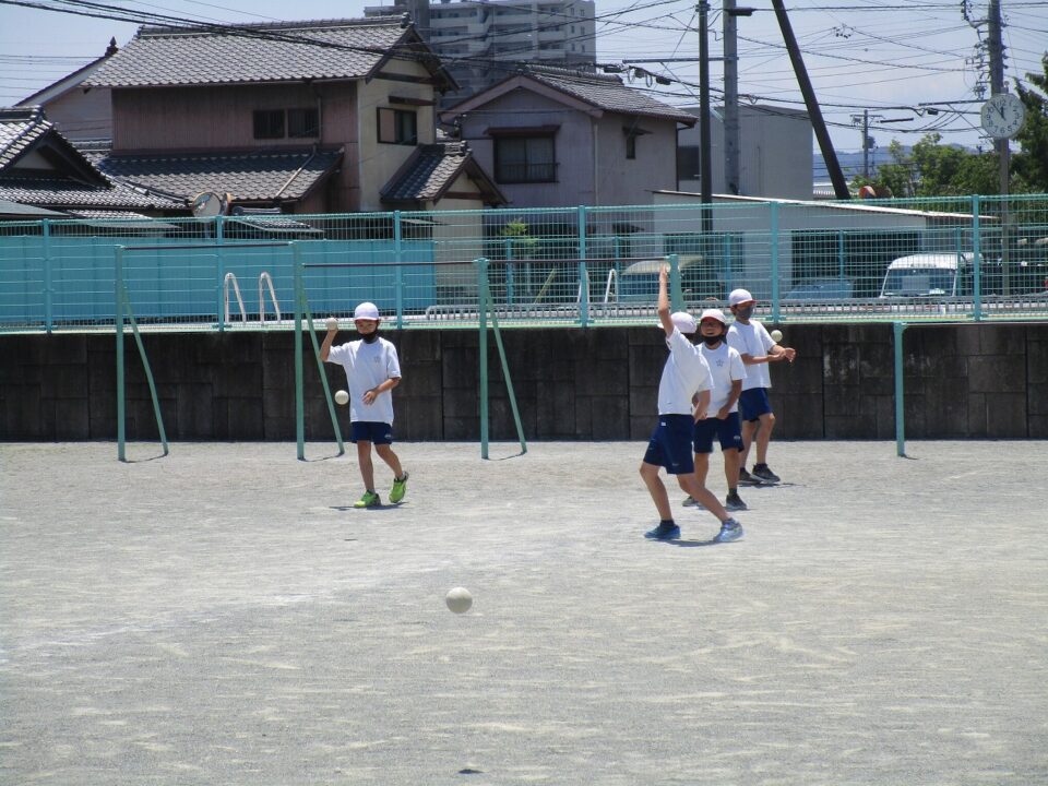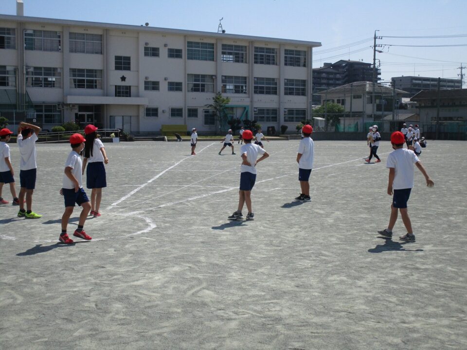 暑さ対策として、ソフトボール投げをしに外へ出ている間に、エアコンで教室を冷やしておいてあります。