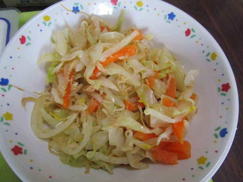 今日の給食は、ご飯、牛乳、豆腐のみそあんかけ、中華風和え物、くずまんじゅう でした。