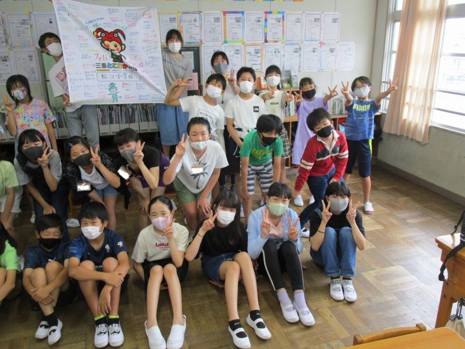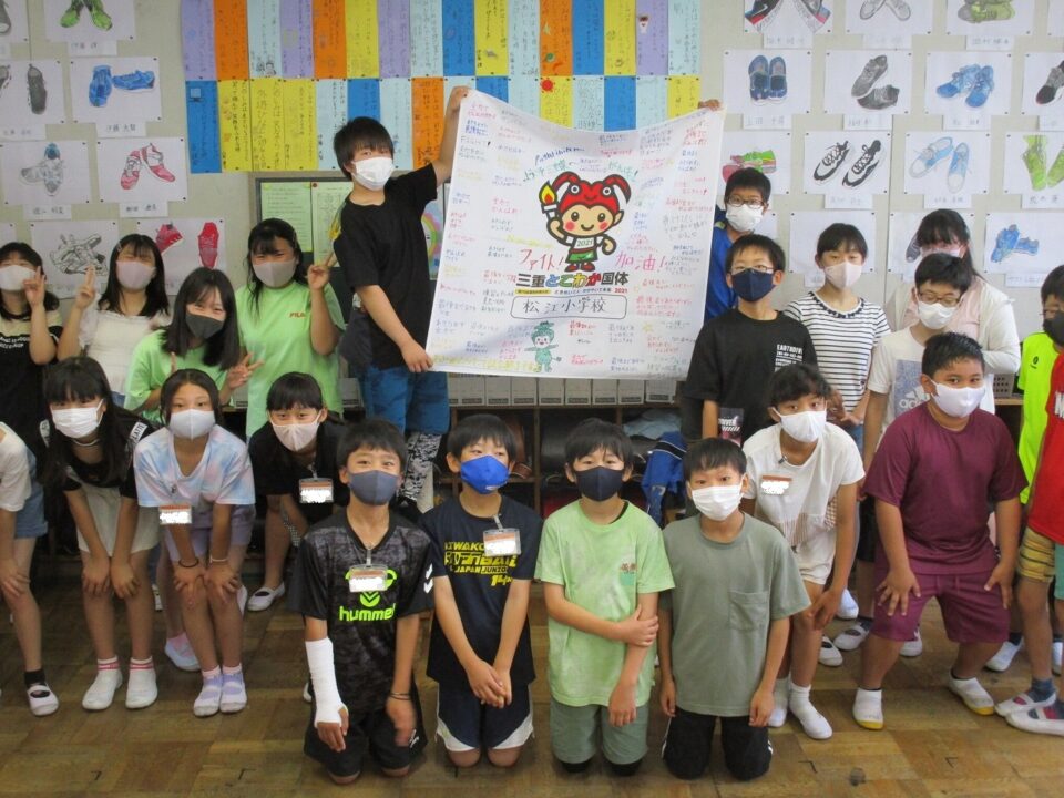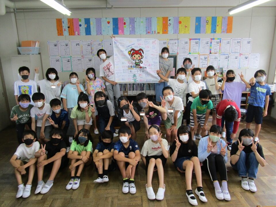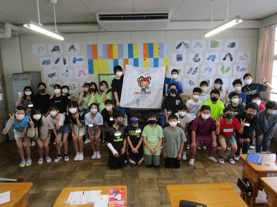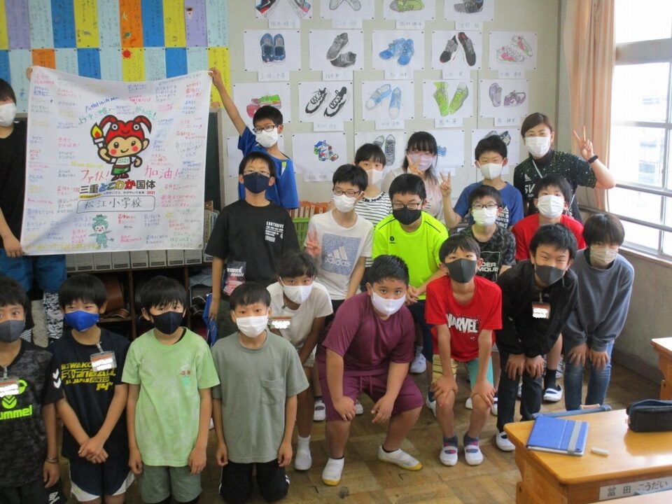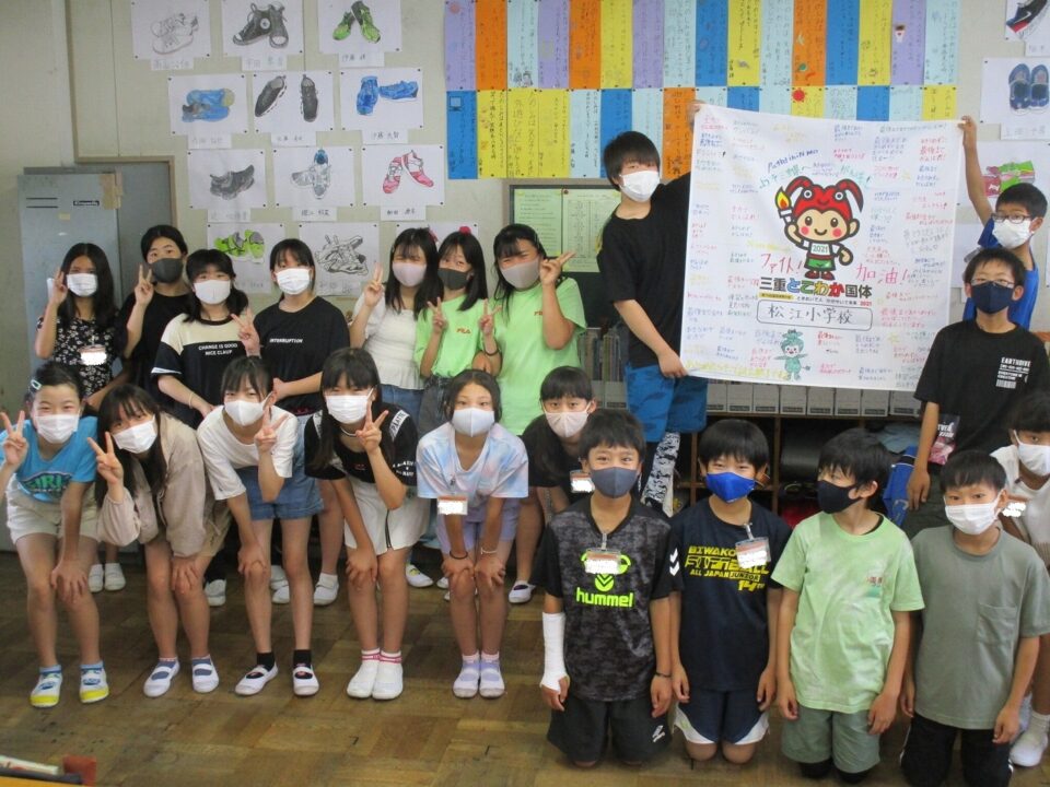 9月から行われる三重県「とこわか国体・とこわか大会」の寄せ書きを6年生(ねんせい)の子たちが学校代表で取り組みました。