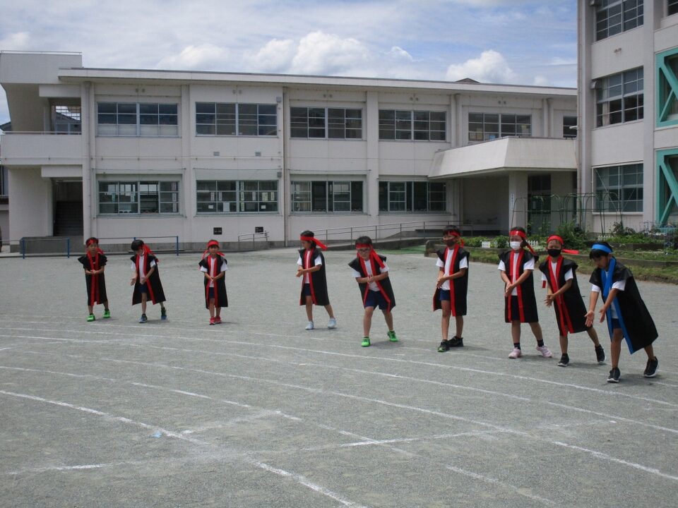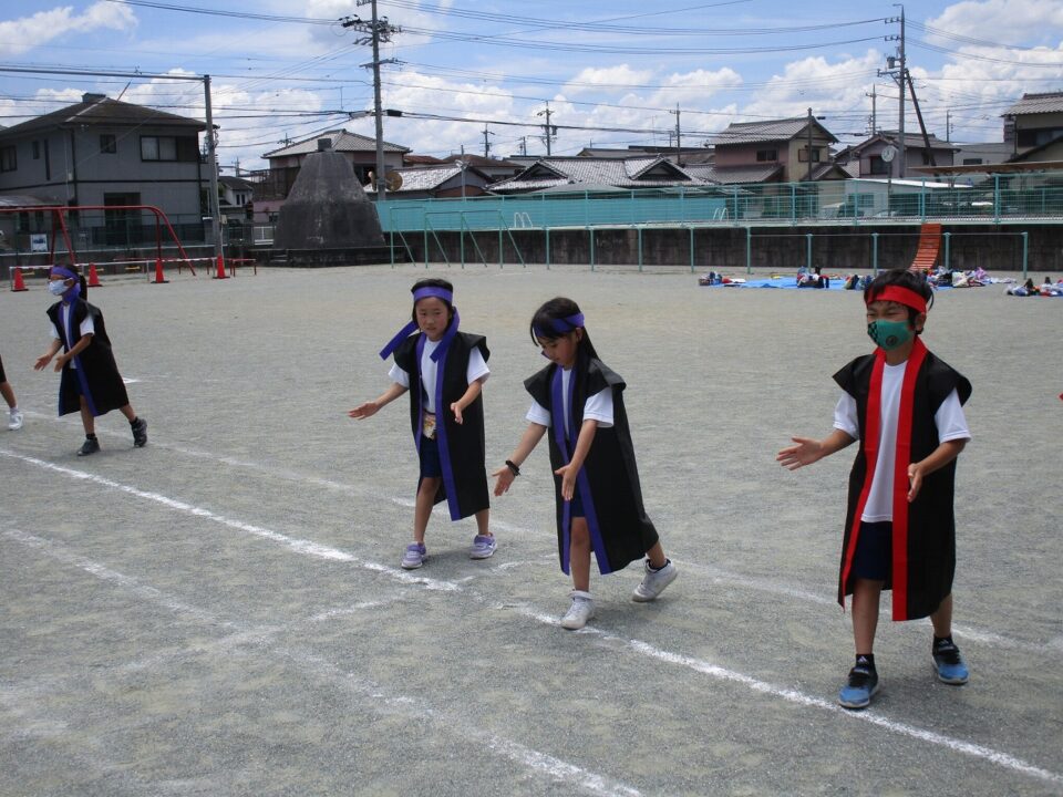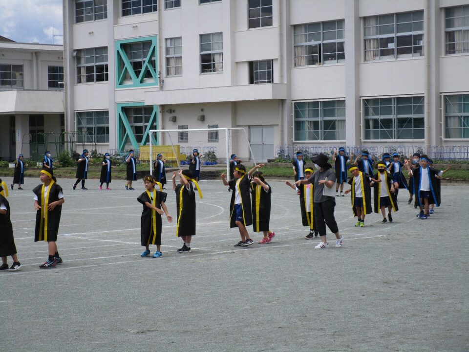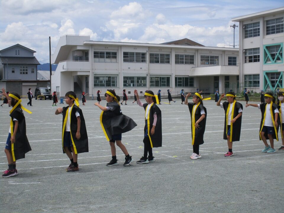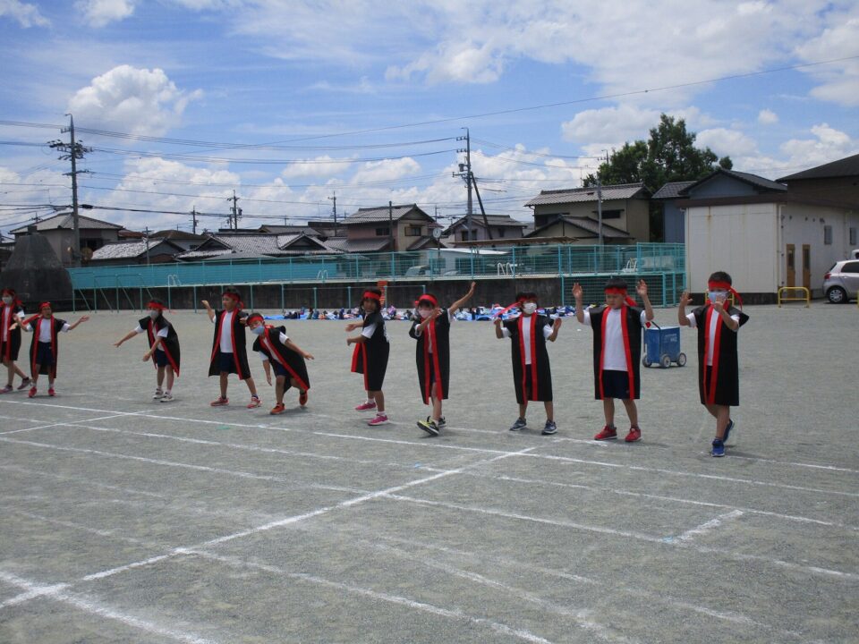 松阪しょんがい音頭を踊りました。今年は、3,4年生の子たちと「松阪しょんがい音頭と踊り保存会」の方たちとのコラボで披露します。