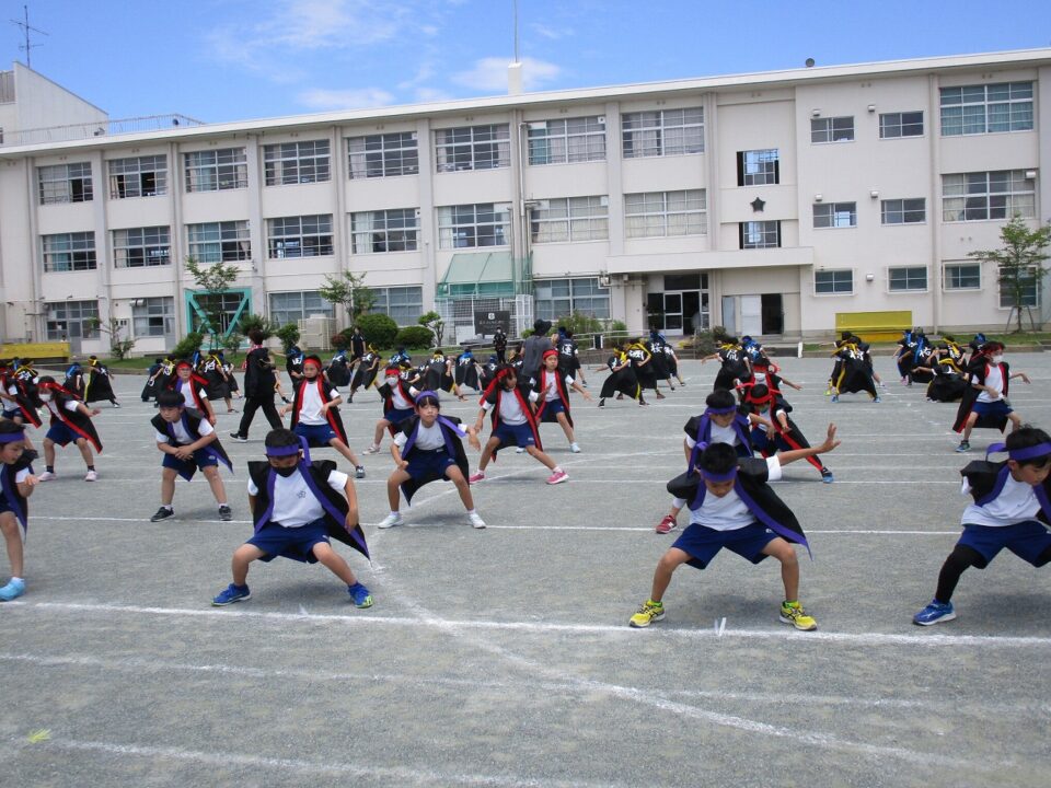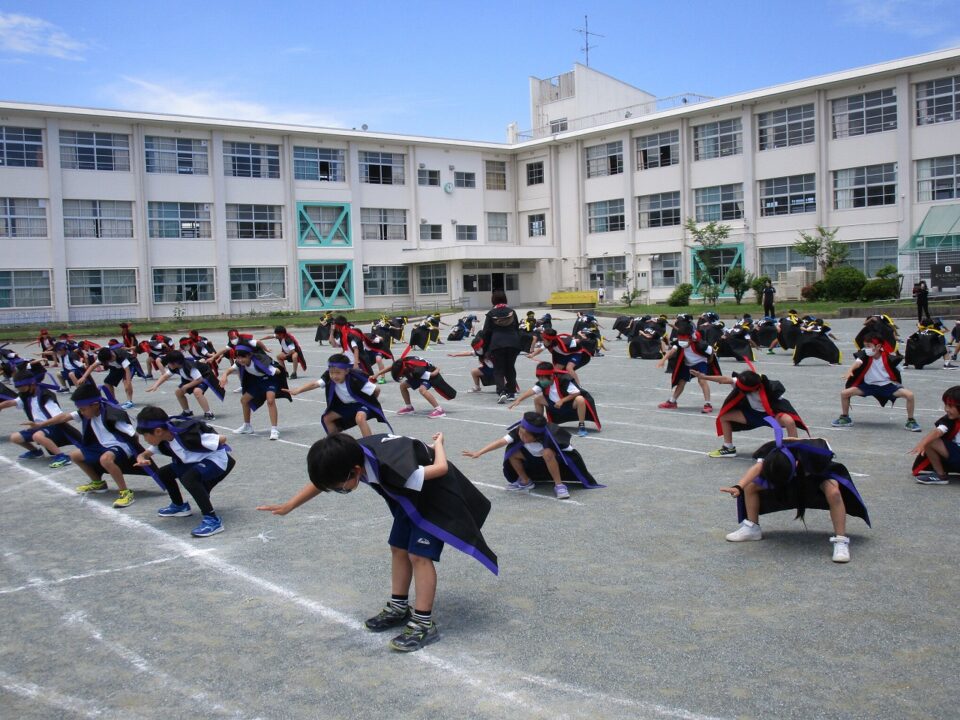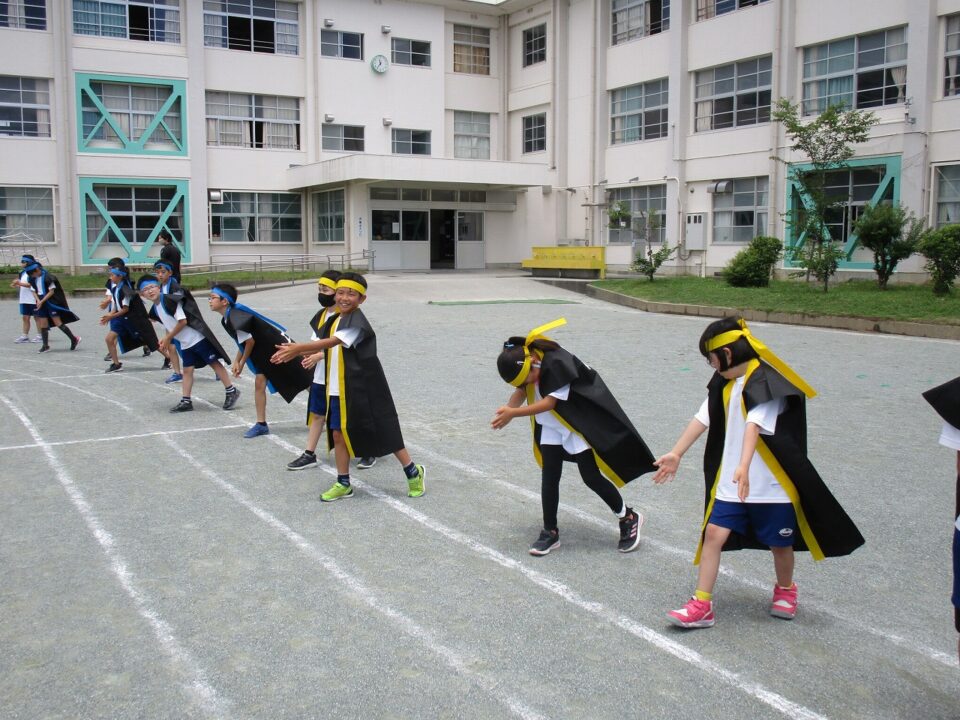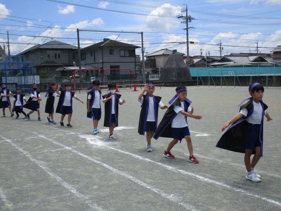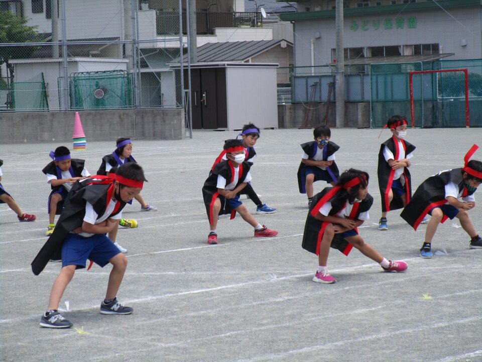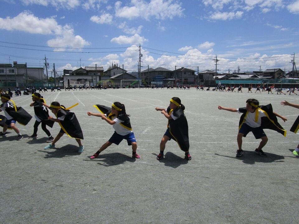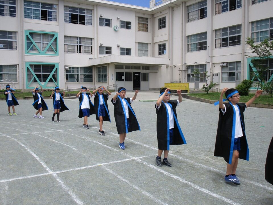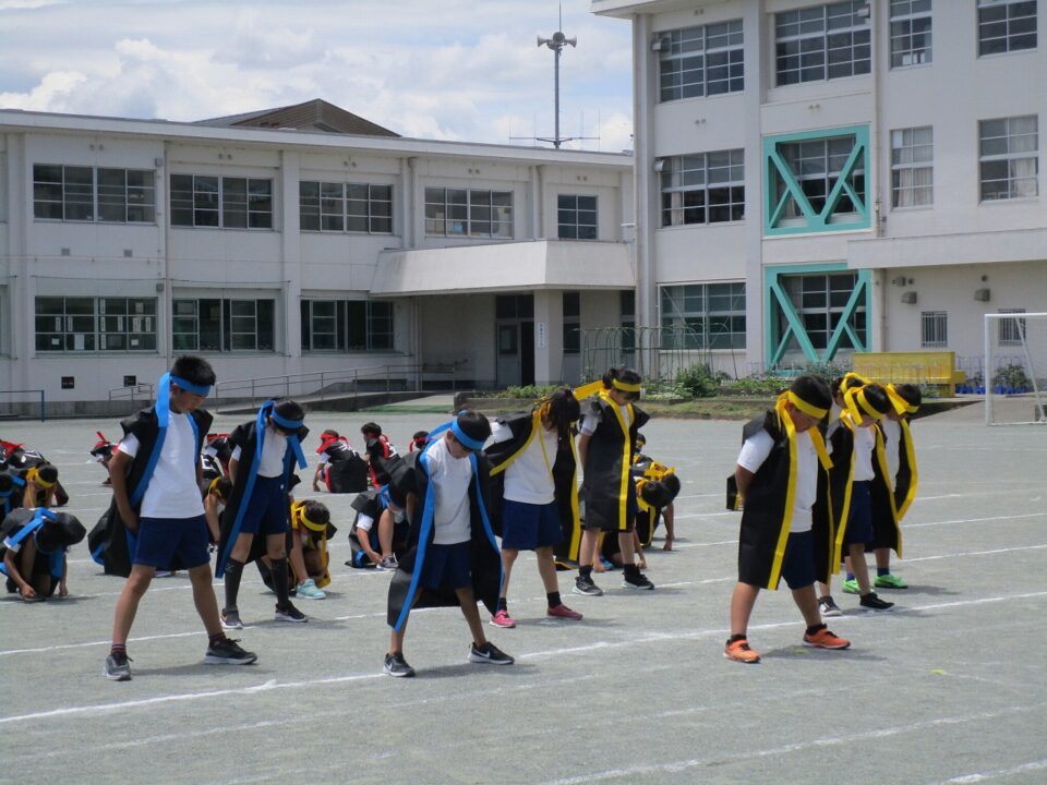 今日は晴れましたので、3,4年生は本番のように流して練習していました。