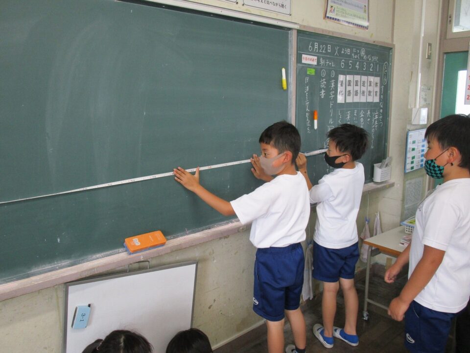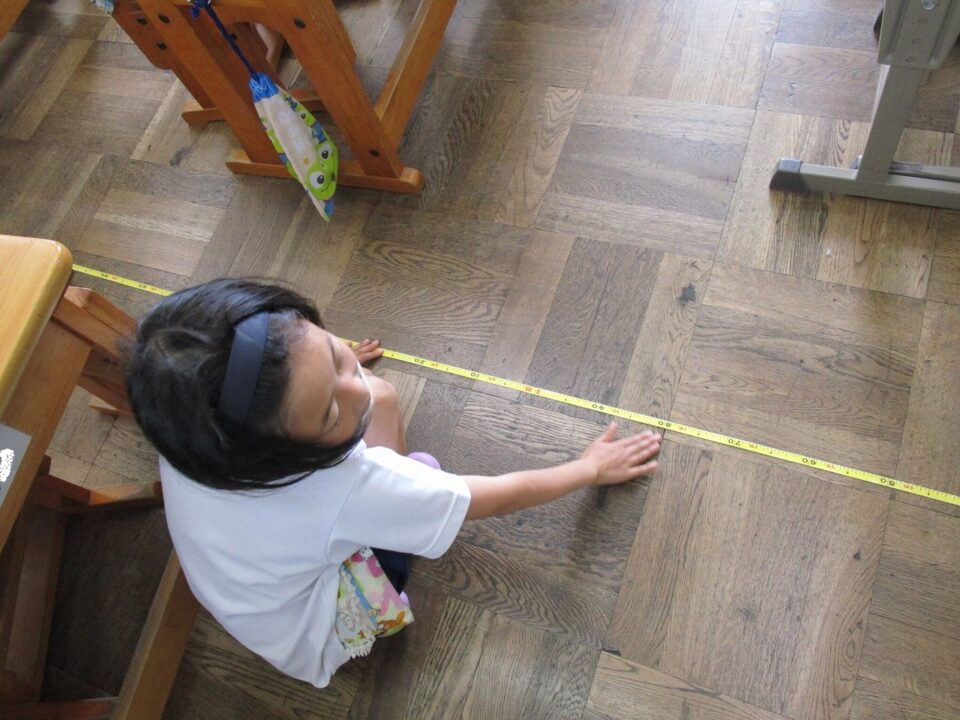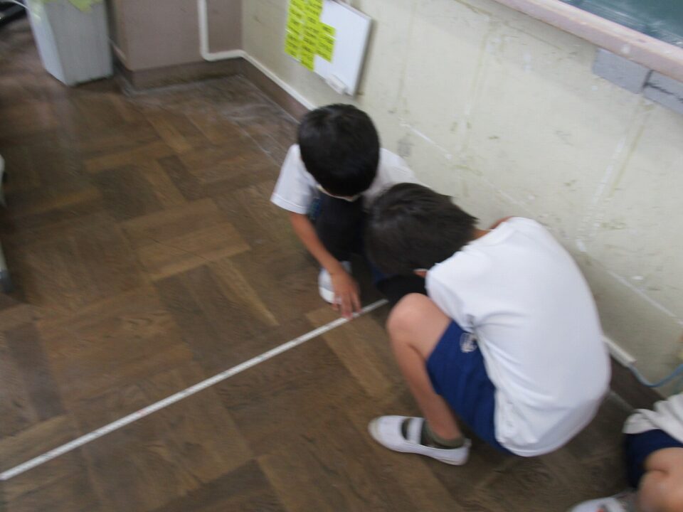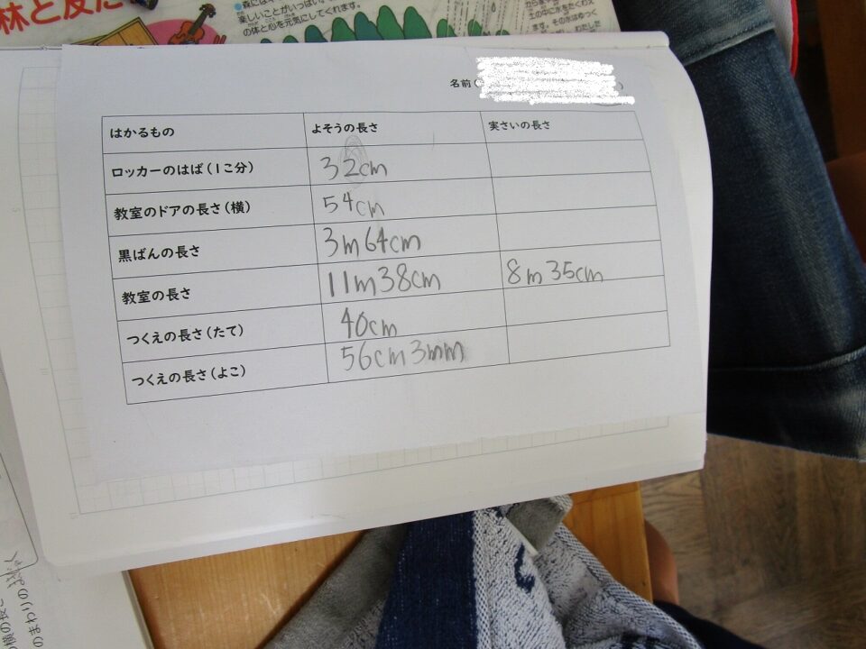 3年生では、算数では長い長さを巻き尺を使って測っていました。
